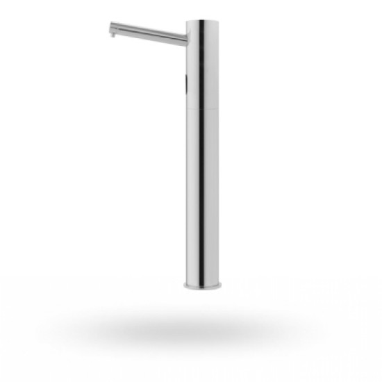 Безконтактний дозатор для мила, що спрацьовує від інфрачервоного датчика, для установки на раковині або стільниці. Покриття дозатора – хромоване, за бажанням замовника можливі інші покриття. При слабкому зарядженні батареї датчик починає блимати. У стандартний комплект поставки входить ємність для мила на 1 літр і пристрій для ємності, що підтримує. Додатково можна замовити подовжувач та довшу трубку, що виходить із дозатора.