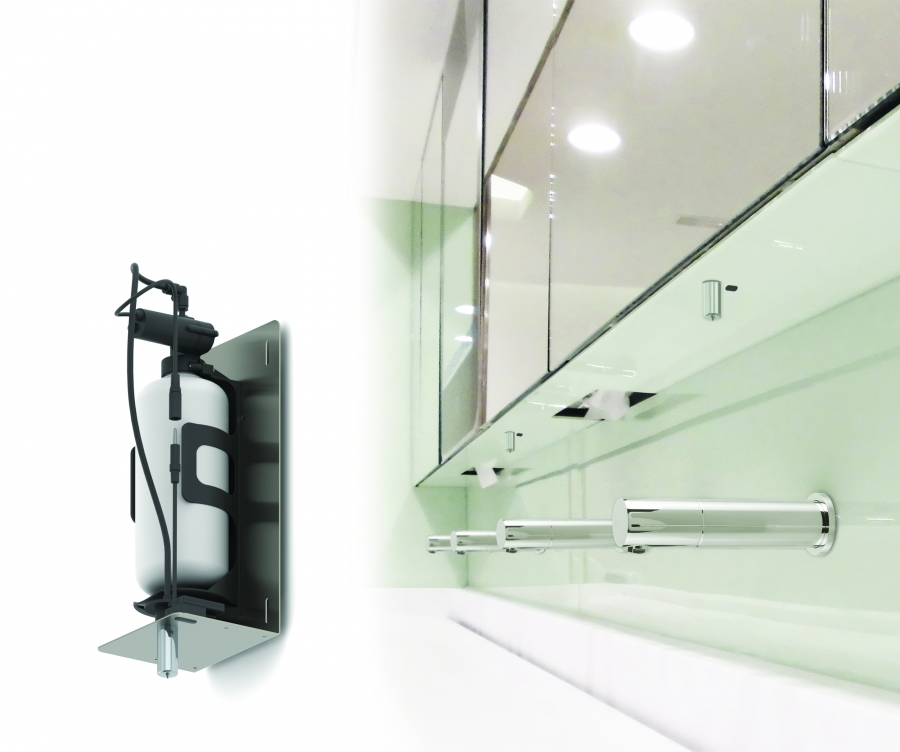 Безконтактний дозатор для мила, що спрацьовує від інфрачервоного датчика для настінного монтажу в суцільній стіні (за дзеркалом). Покриття дозатора – хромоване, за бажанням замовника можливі інші покриття. При слабкому зарядженні батареї датчик починає блимати. У стандартний комплект поставки входить ємність для мила на 1 літр і пристрій для ємності, що підтримує. Додатково можна замовити подовжувач та довшу трубку, що виходить із дозатора.