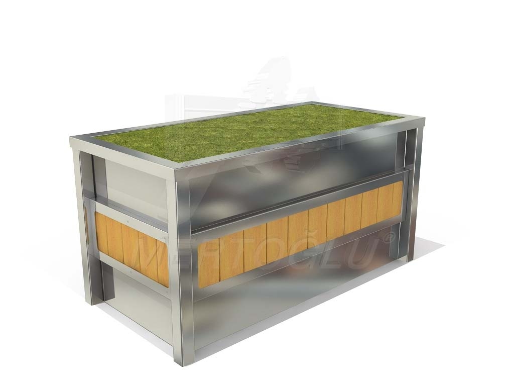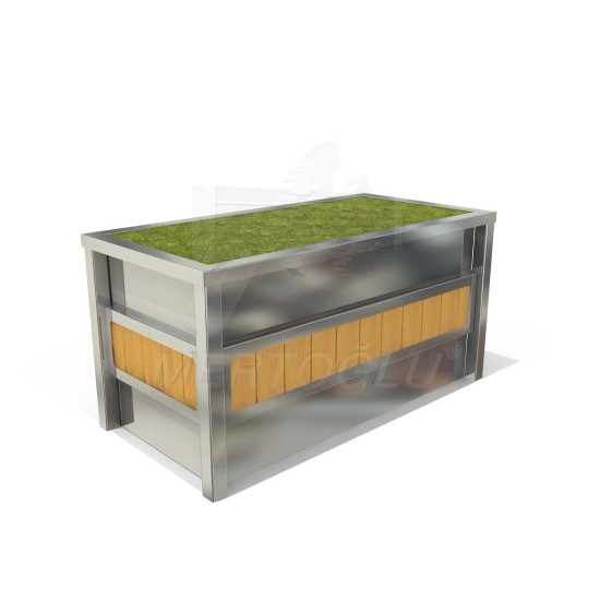 Кашпо для рослин з нержавіючої сталі AISI 304 та дерева-сосни з просоченням та лаковим покриттям, встановлюється на підлогу, для застосування всередині приміщення