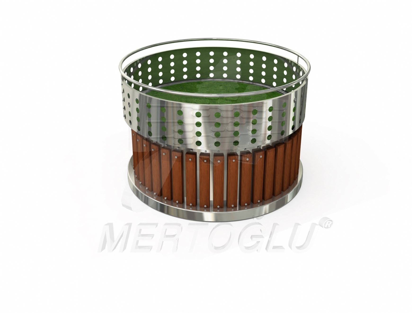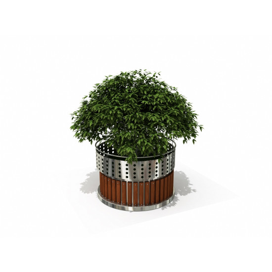 Кашпо для рослин з нержавіючої сталі AISI 304 та дерева-сосни з просоченням та лаковим покриттям, встановлюється на підлогу, для застосування всередині приміщення