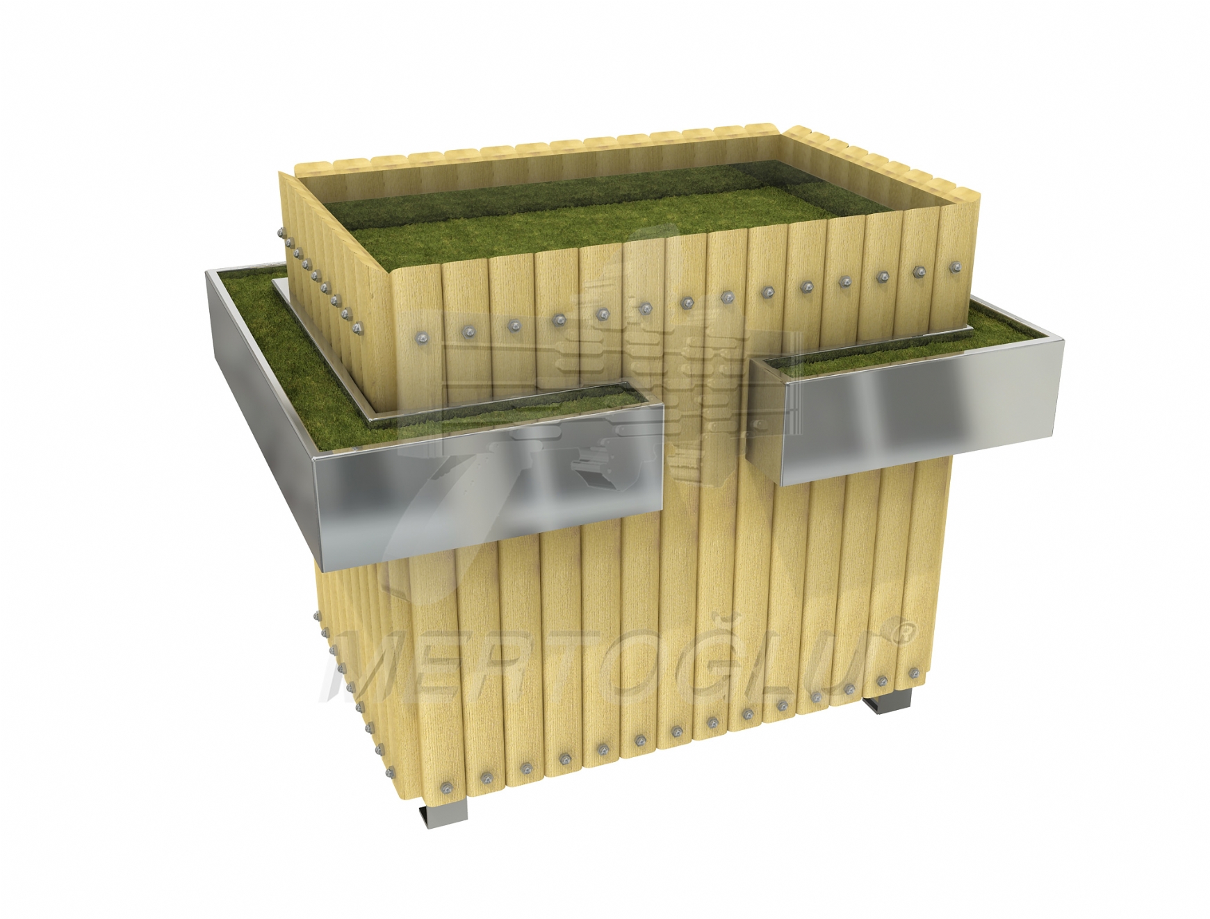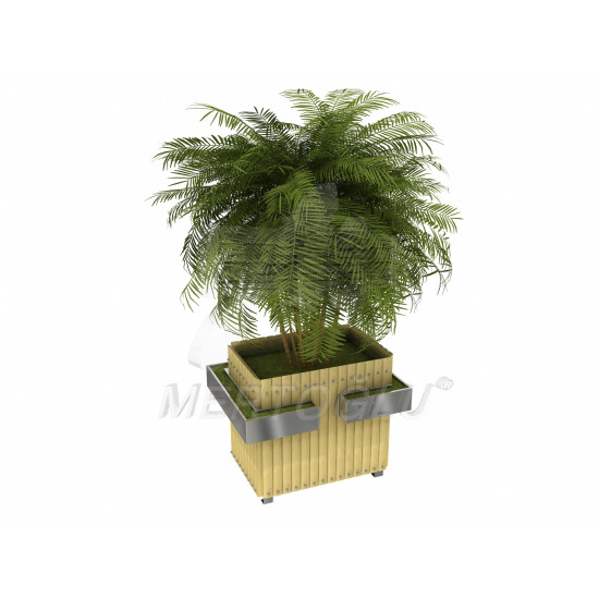 Кашпо для рослин з дерева-сосни з просоченням і лаковим покриттям і нержавіючої сталі AISI 304, внутрішній резервуар - оцинкована сталь, встановлюється на підлогу, для застосування всередині приміщення