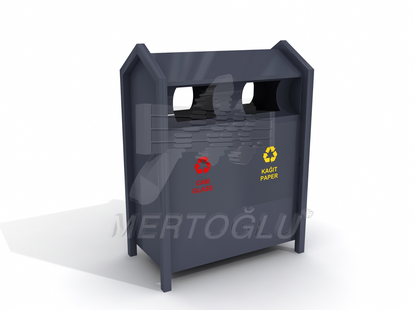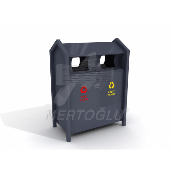 Урна для різного типу сміття, з листового металу та профільної металевої труби, 2 відсіки, обсяг одного відсіку - 75 літрів, встановлюється на підлогу, для застосування всередині та зовні приміщення