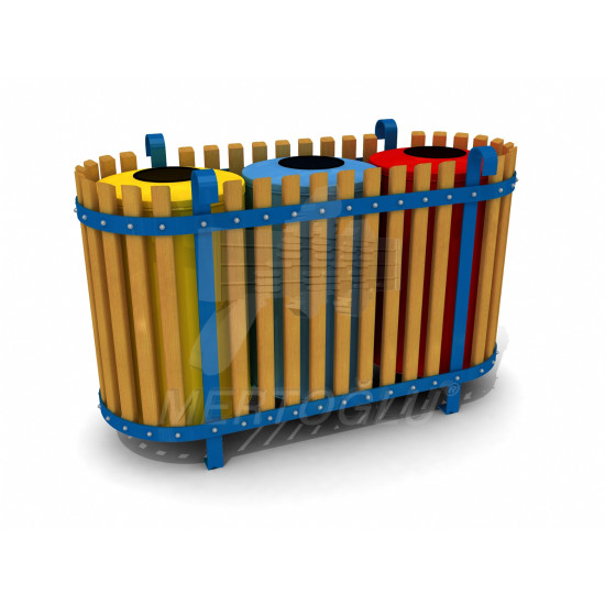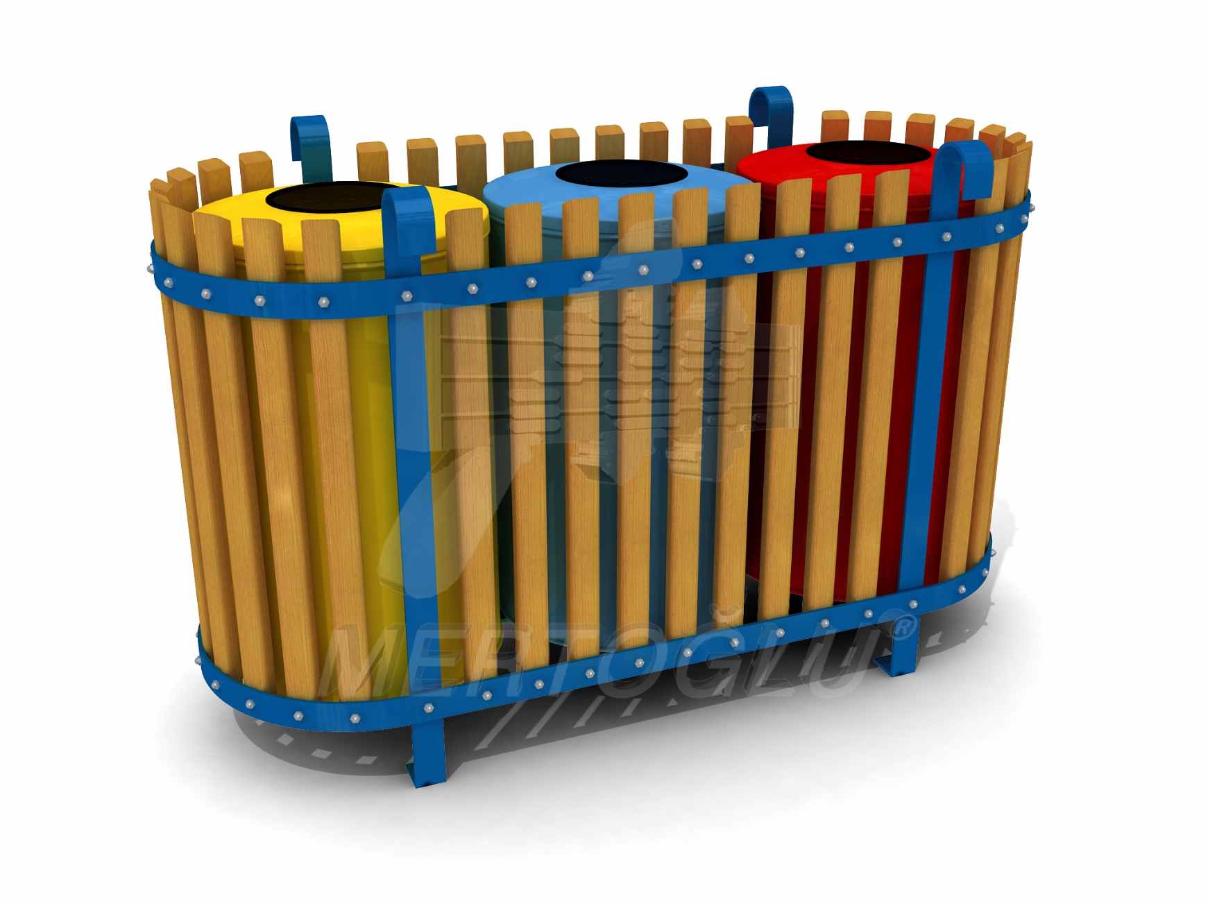 Урна для різного типу сміття, з листового металу і дерево-сосни з просоченням і лаковим покриттям, 3 відсіки, обсяг одного відсіку - 59 літрів, встановлюється на підлогу, для застосування всередині та зовні приміщення