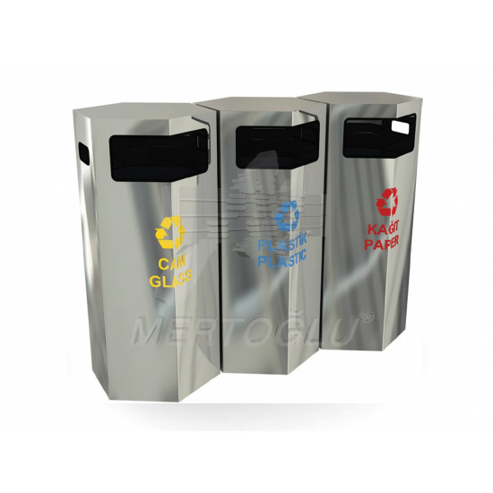 Урна для різного типу сміття, з нержавіючої сталі AISI 304,3 відсіку, обсяг одного відсіку - 60 літрів, встановлюється на підлогу, для застосування всередині та зовні приміщення