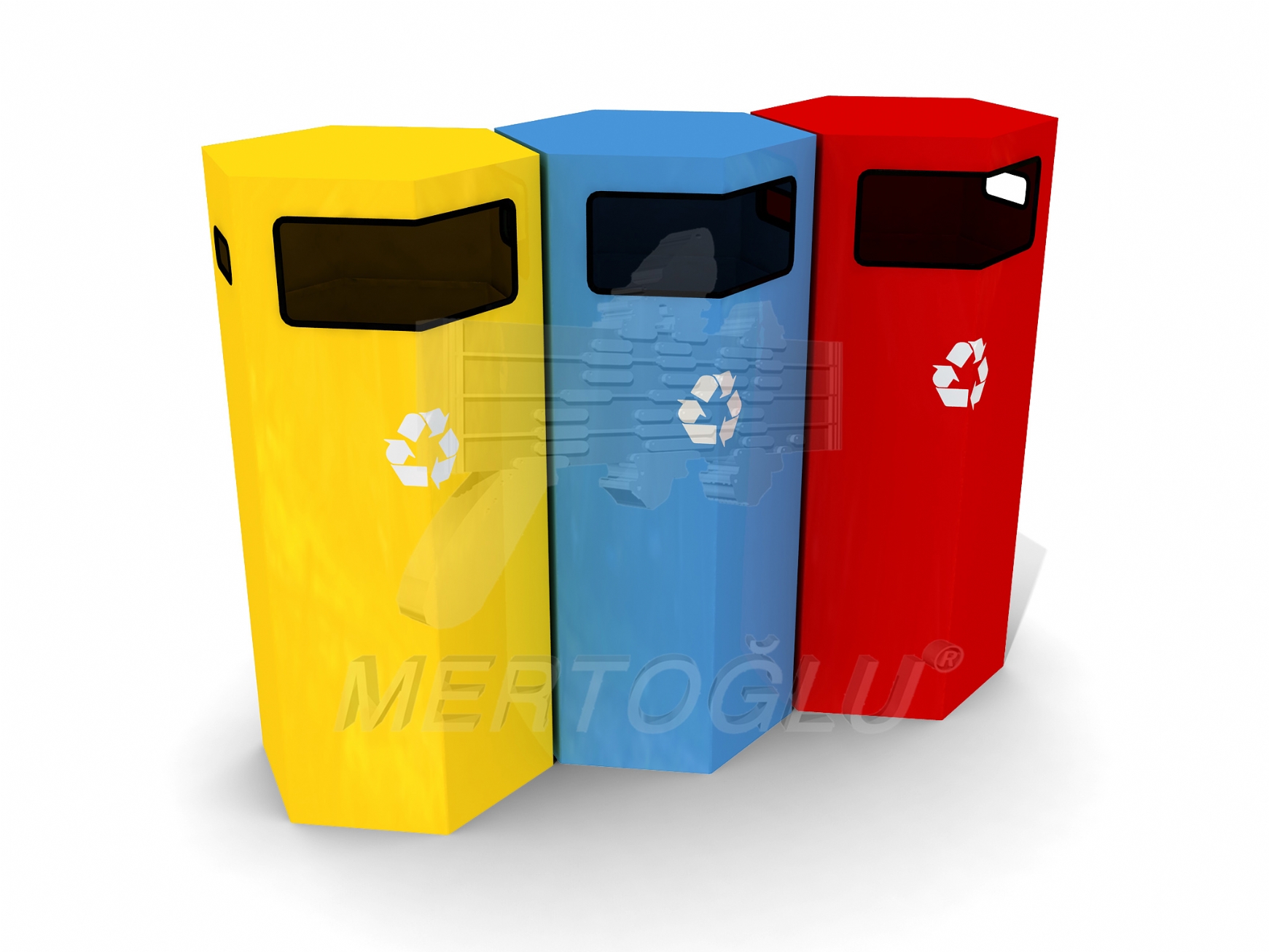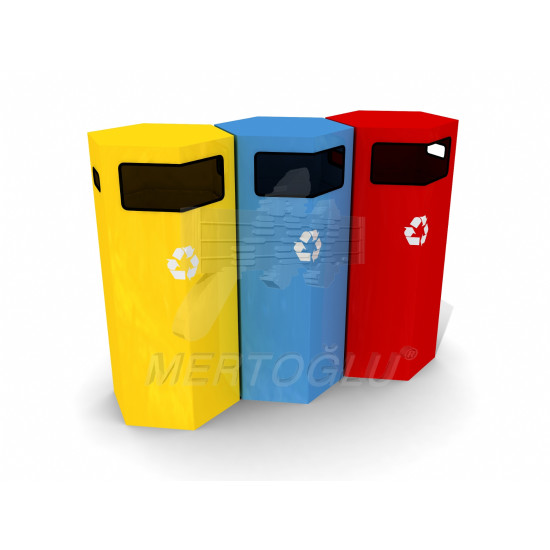 Урна для різного типу сміття, з листового металу та профільної металевої труби, 3 відсіки, обсяг одного відсіку - 60 літрів, встановлюється на підлогу, для застосування всередині та зовні приміщення