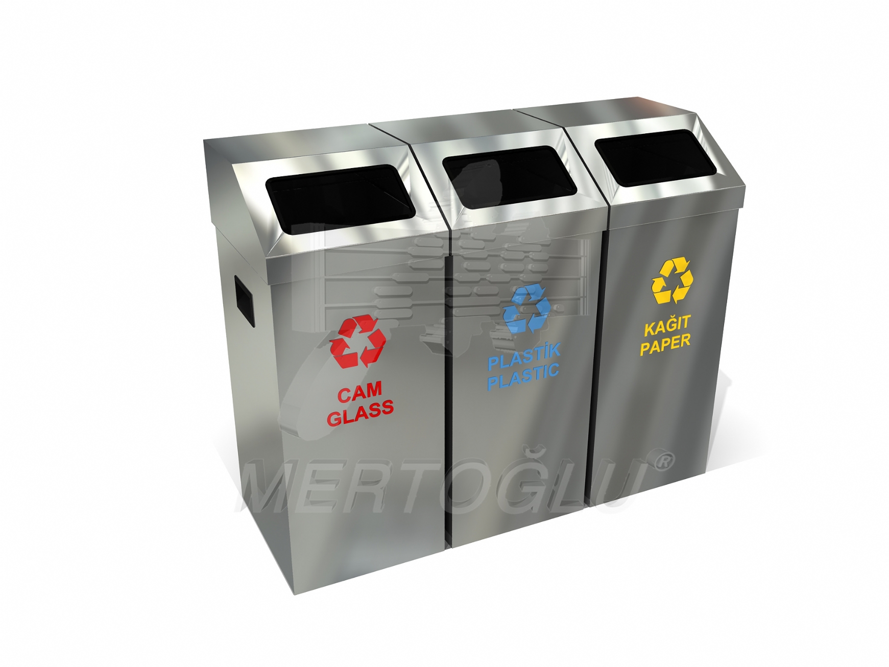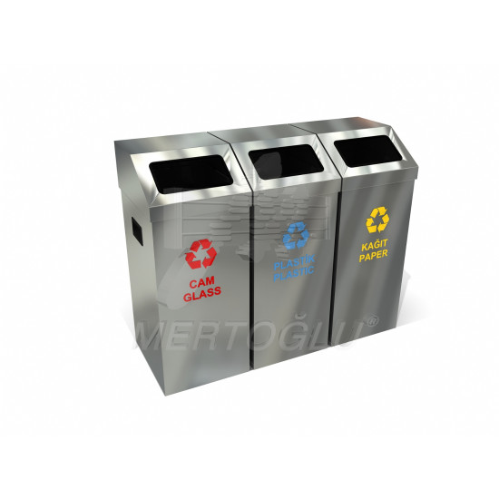 Урна для різного типу сміття, з нержавіючої сталі AISI 304,3 відсіку, обсяг одного відсіку - 46 літрів, встановлюється на підлогу, для застосування всередині та зовні приміщення