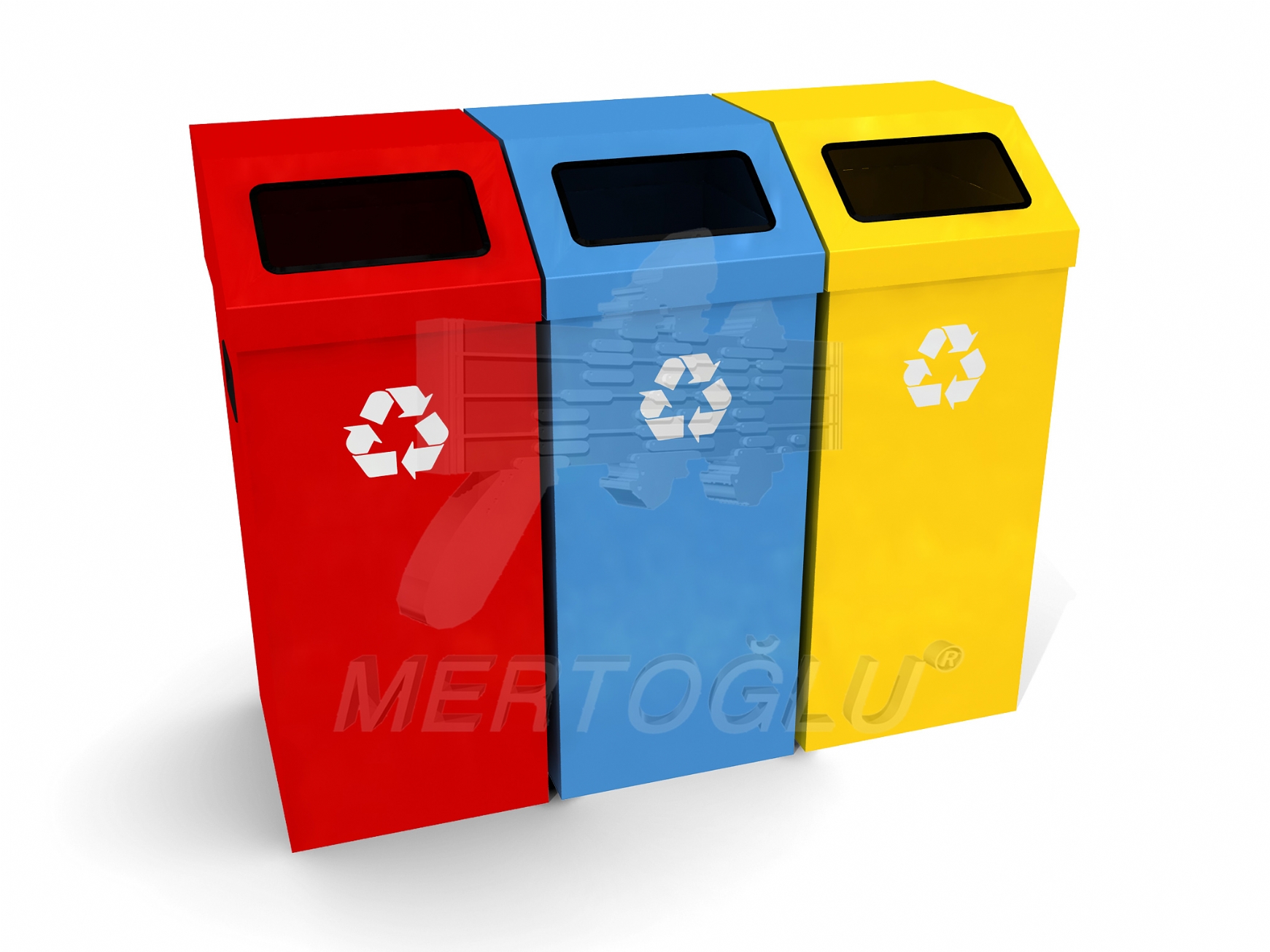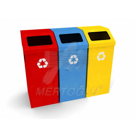 Урна для різного типу сміття, з листового металу та профільної металевої труби, 3 відсіки, обсяг одного відсіку -46 літрів, встановлюється на підлогу, для застосування всередині та зовні приміщення