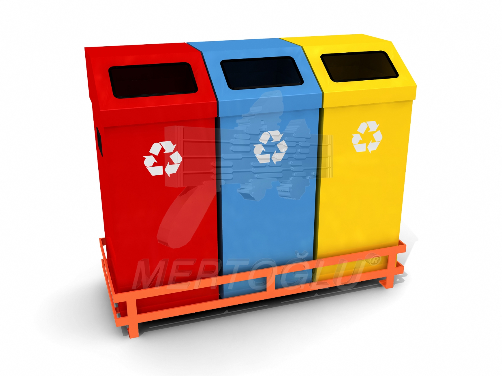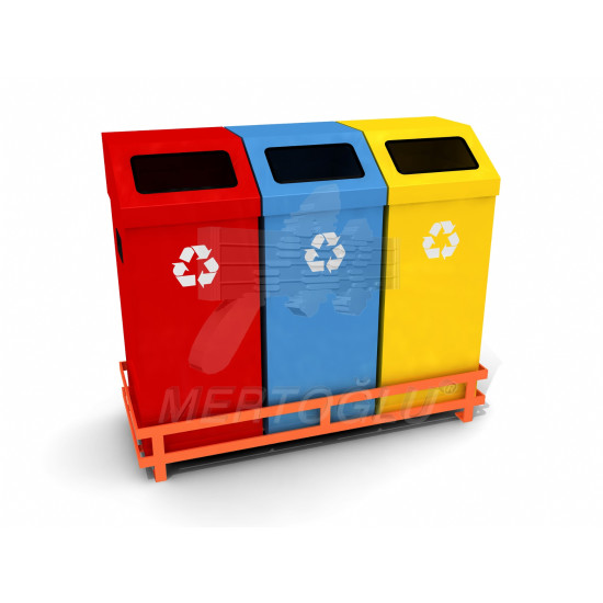 Урна для різного типу сміття, з листового металу та профільної металевої труби, 3 відсіки, обсяг одного відсіку -46 літрів, встановлюється на підлогу, для застосування всередині та зовні приміщення