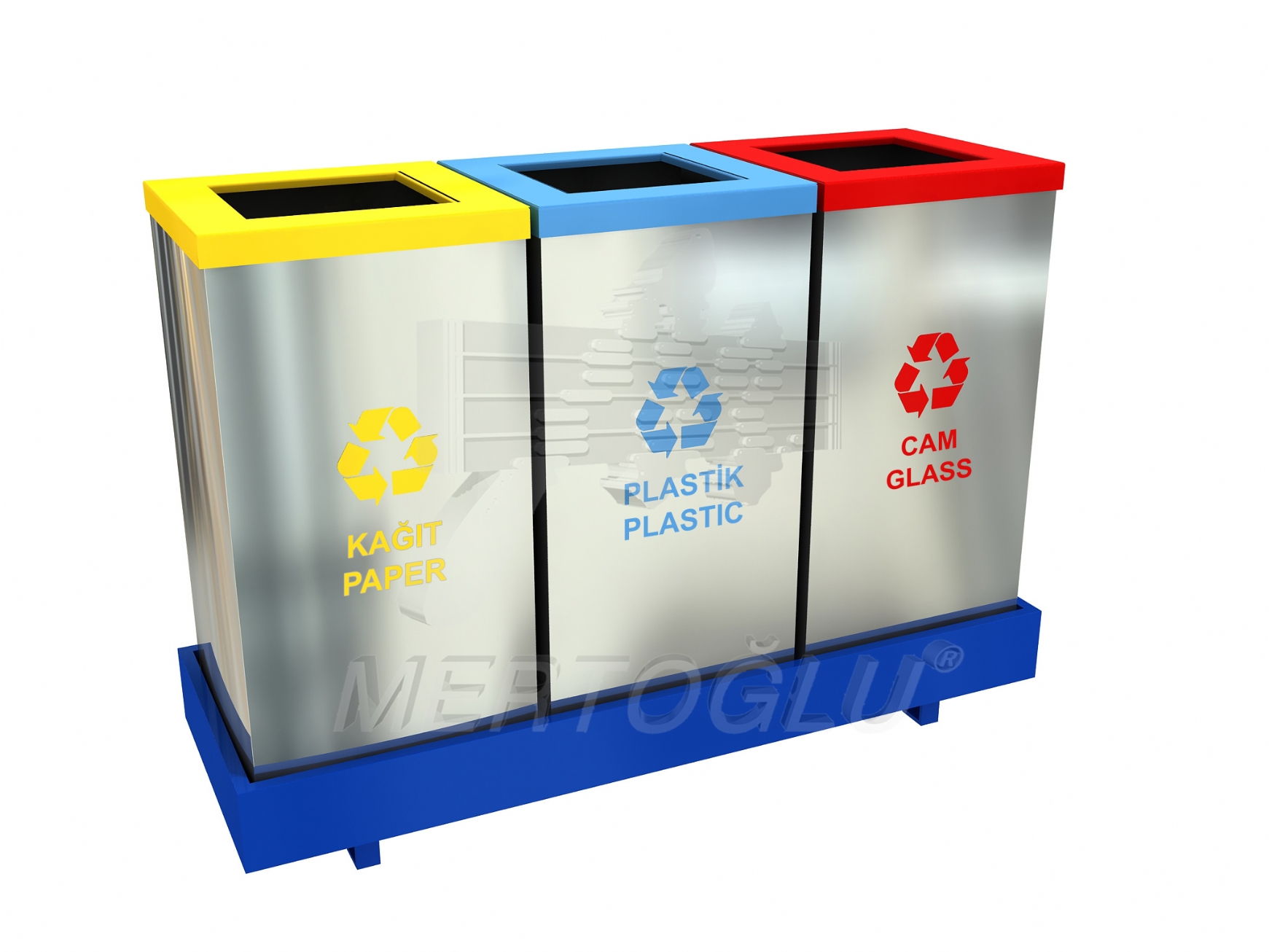 Урна для різного типу сміття, з нержавіючої сталі AISI 304,3 відсіку, обсяг одного відсіку - 53 літри, встановлюється на підлогу, для застосування всередині та зовні приміщення