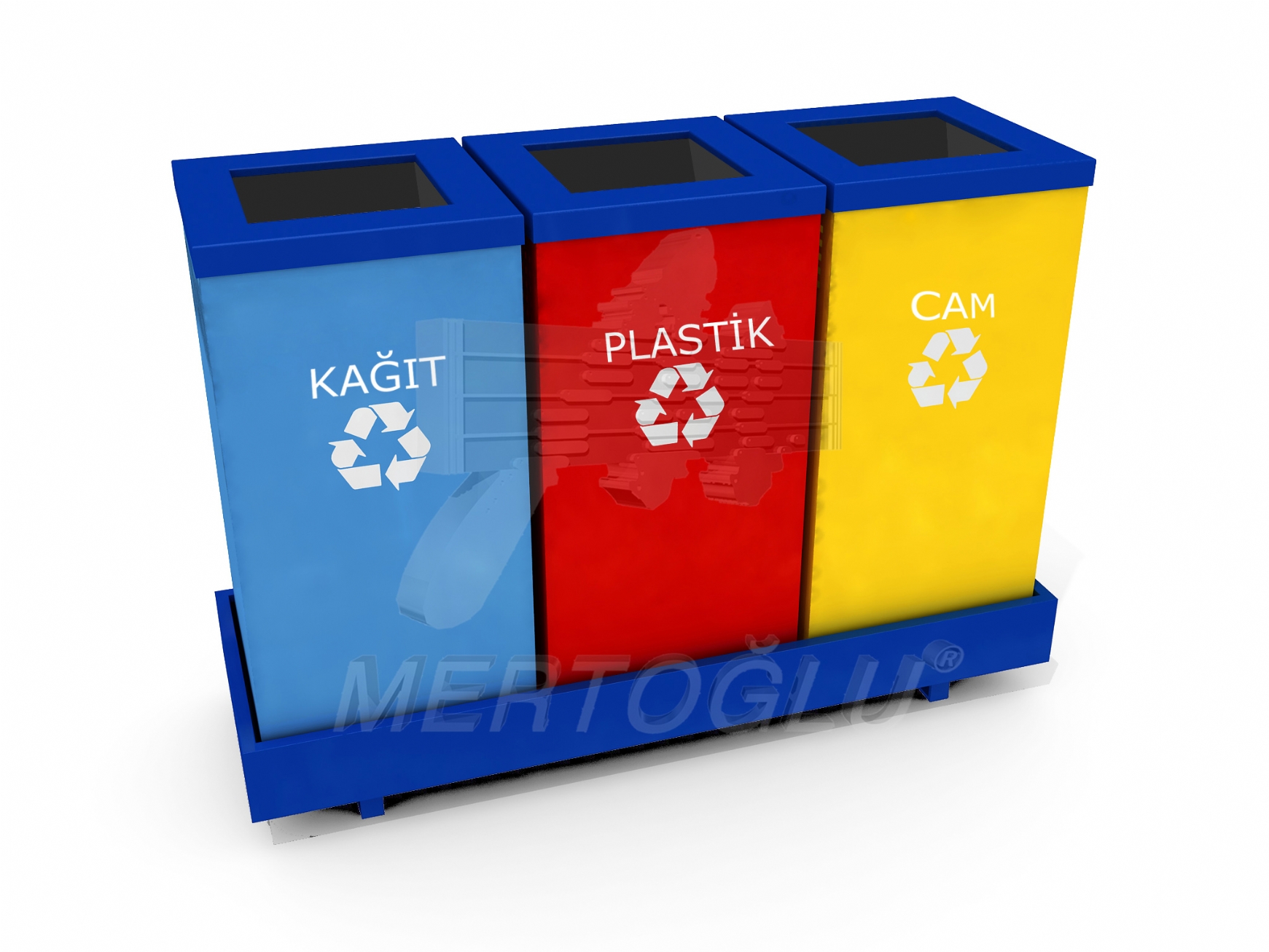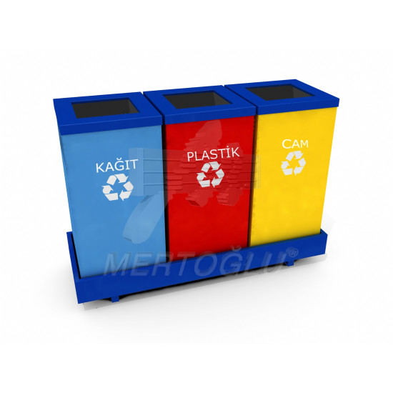 Урна для різного типу сміття, з листового металу та профільної металевої труби, 3 відсіки, об'єм одного відсіку -53 літри, встановлюється на підлогу, для застосування всередині та зовні приміщення
