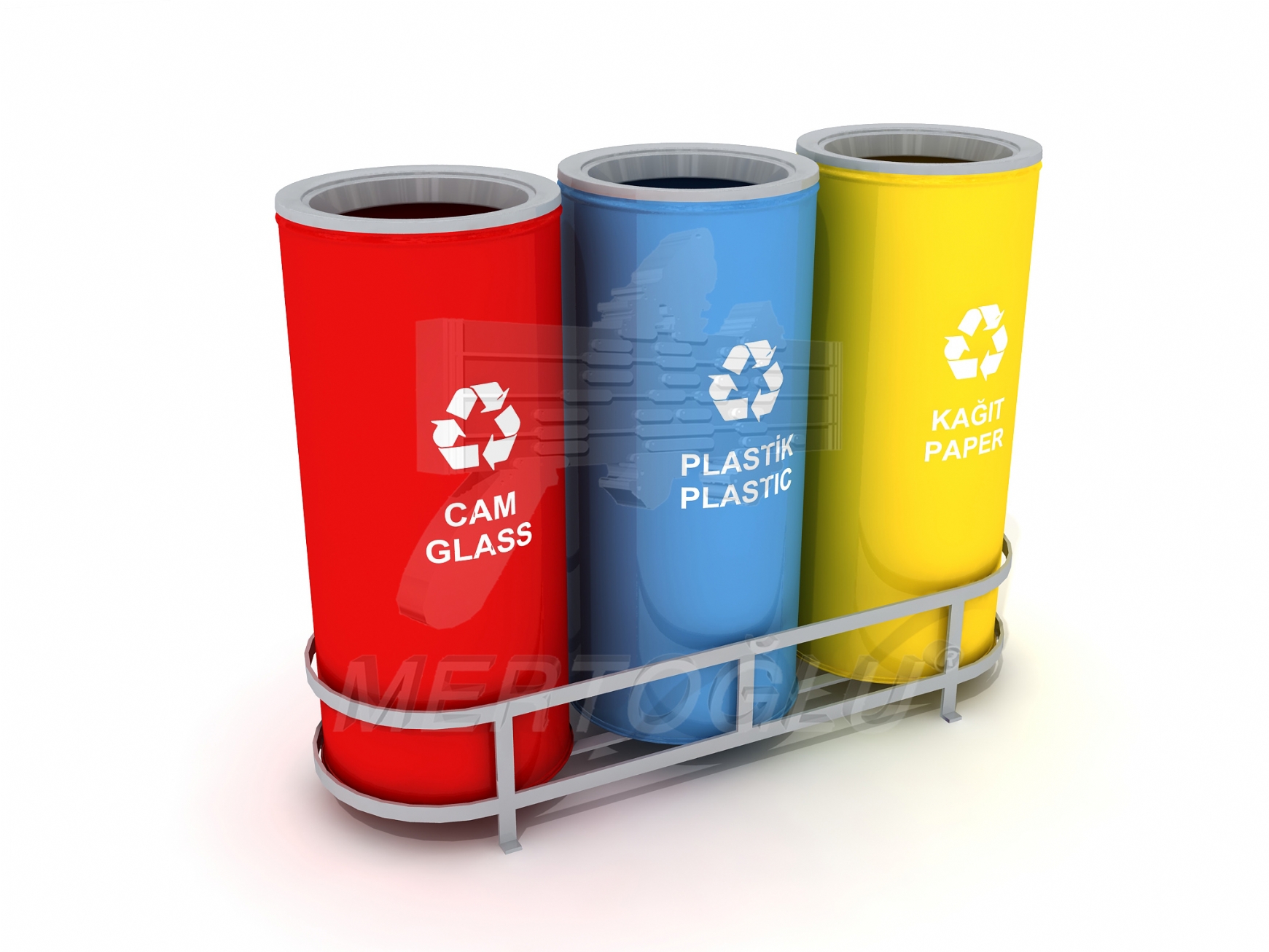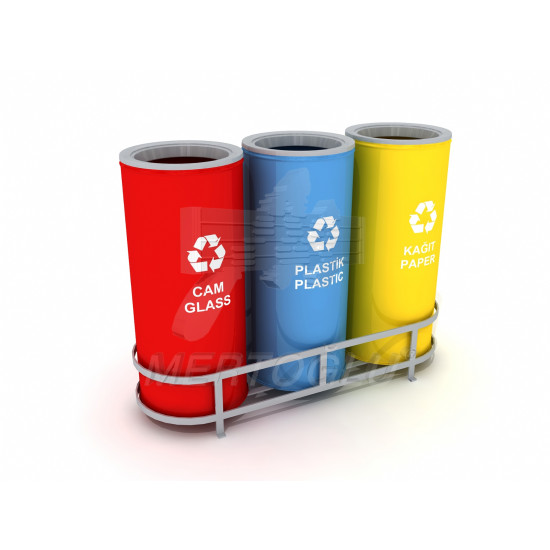 Урна для різного типу сміття, з листового металу та профільної металевої труби, 3 відсіки, обсяг одного відсіку - 47 літрів, встановлюється на підлогу, для застосування всередині та зовні приміщення