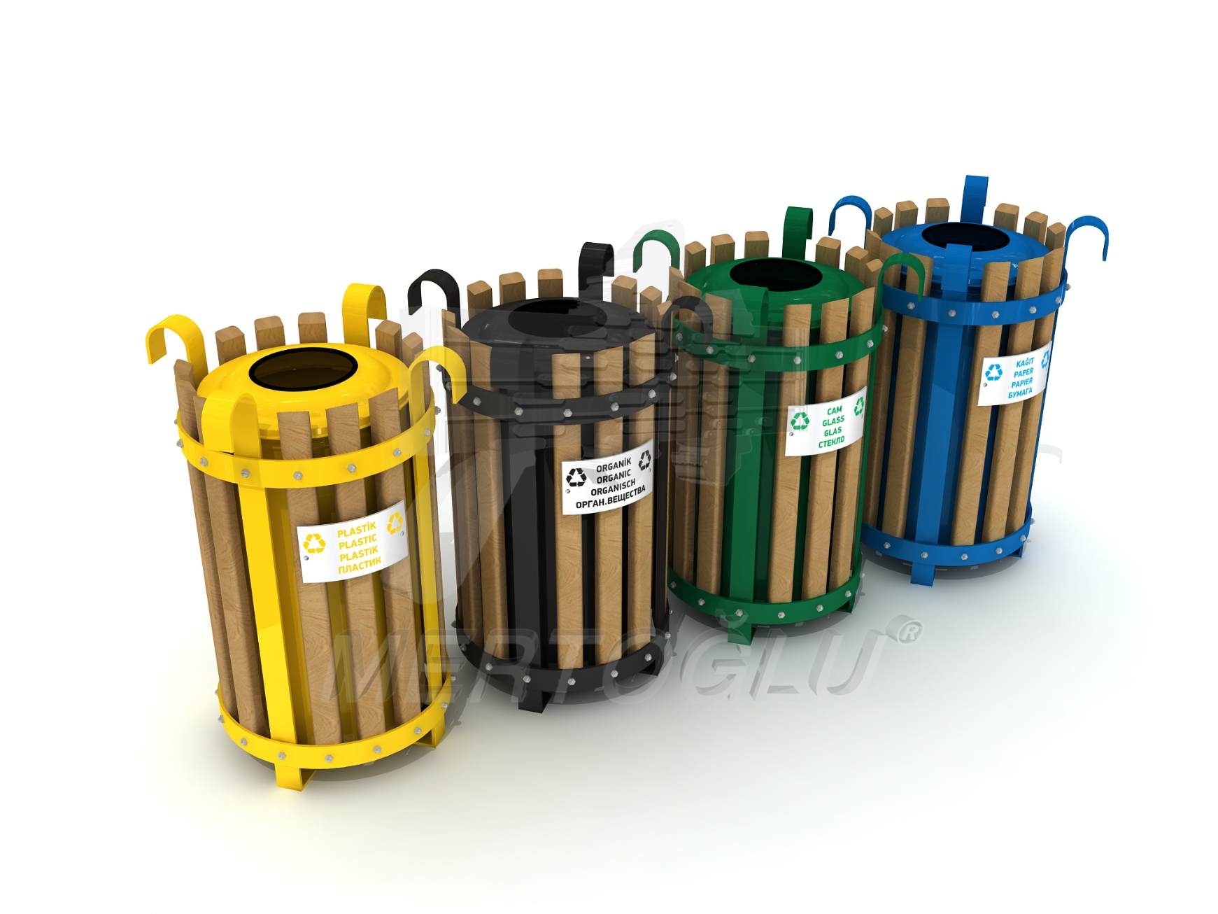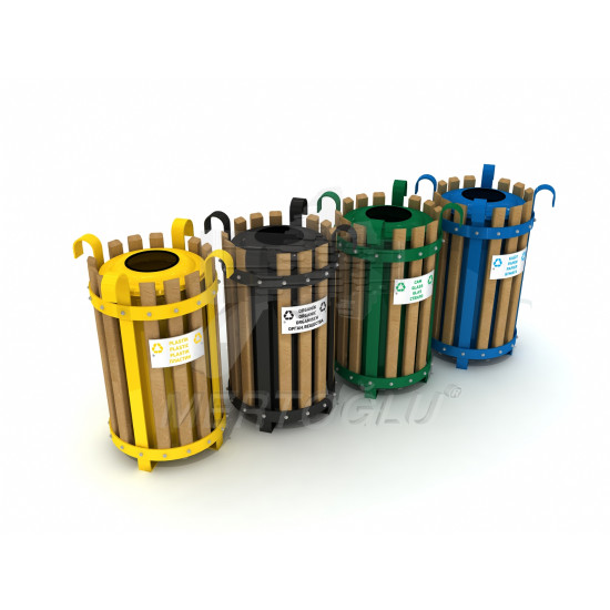 Урна для різного типу сміття, з листового металу і дерево-сосни з просоченням і лаковим покриттям, 4 відсіки, обсяг одного відсіку - 33 літри, встановлюється на підлогу, для застосування всередині та зовні приміщення