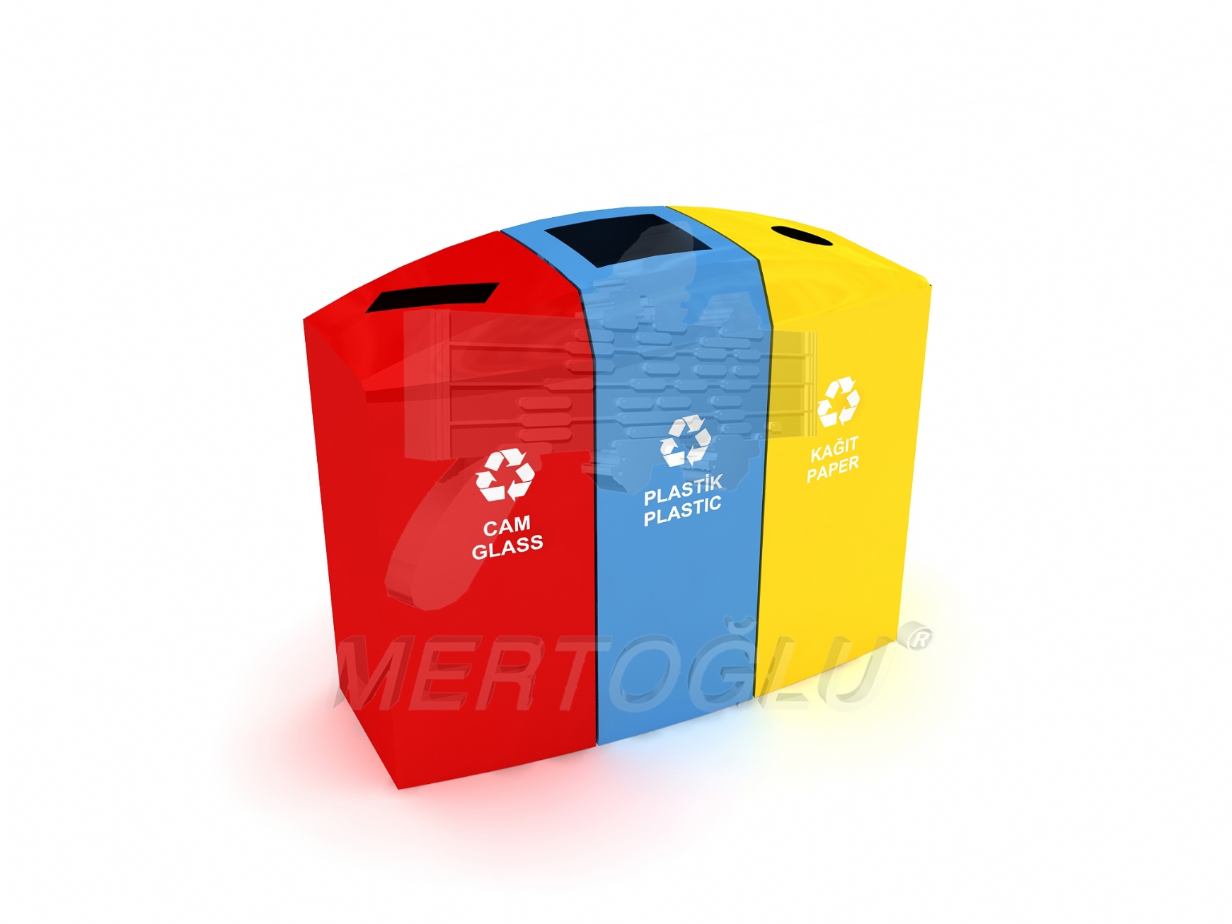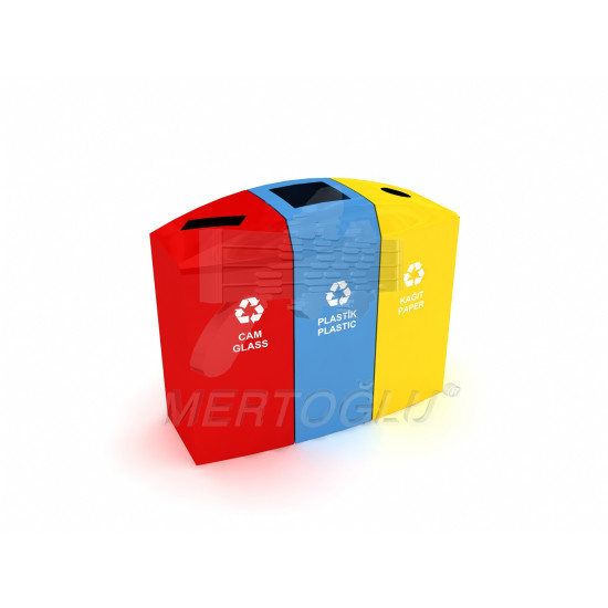 Урна для різного типу сміття, з листового металу, 3 відсіки, обсяг одного відсіку - 38 літрів, встановлюється на підлогу, для застосування всередині та зовні приміщення