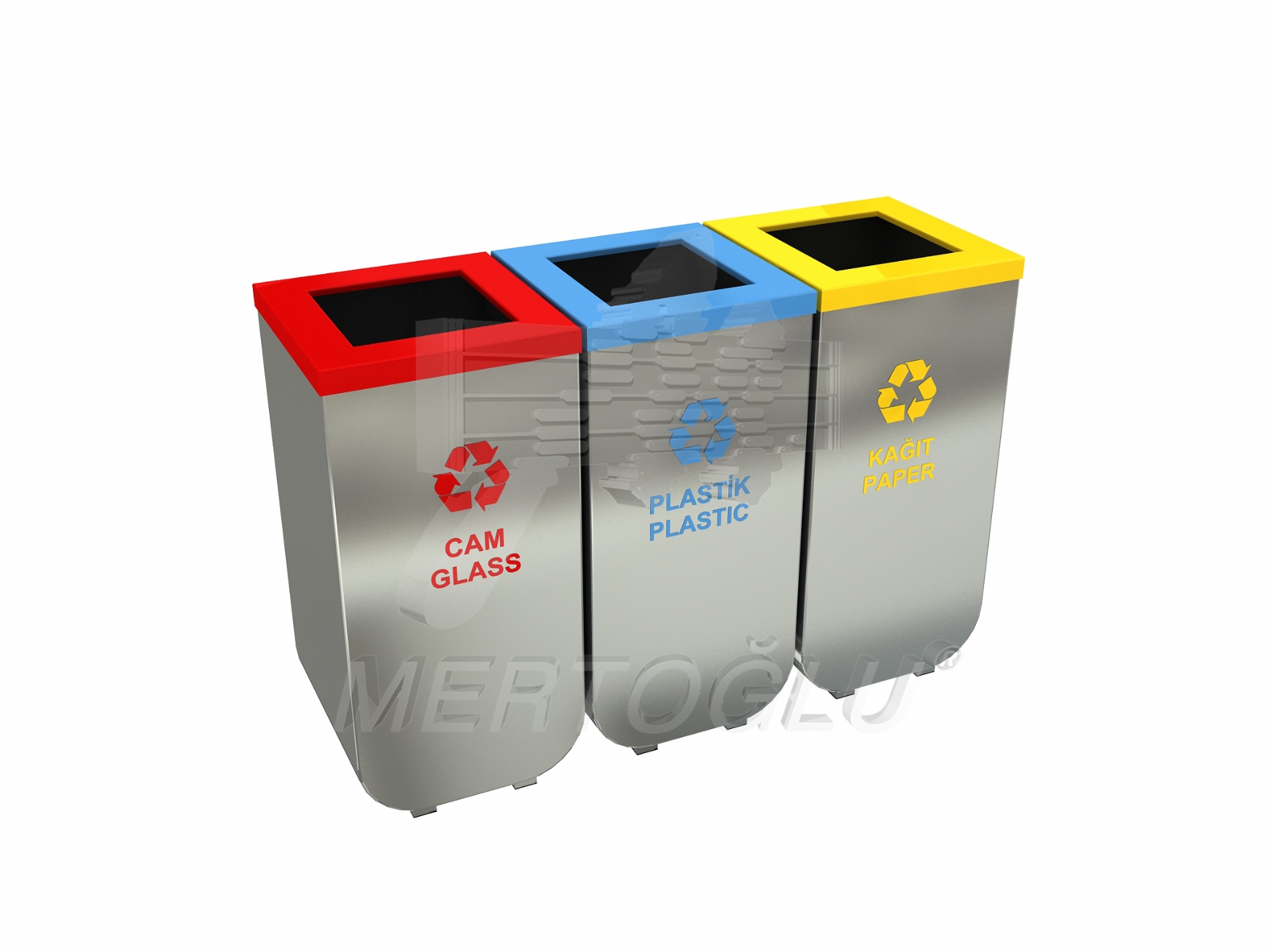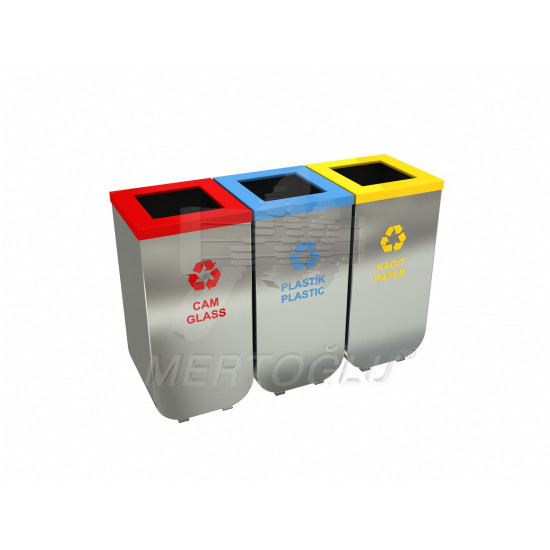 Урна для різного типу сміття, з нержавіючої сталі AISI 304 та листового металу, 3 відсіки, обсяг одного відсіку - 50 літрів, встановлюється на підлогу, для застосування всередині та зовні приміщення