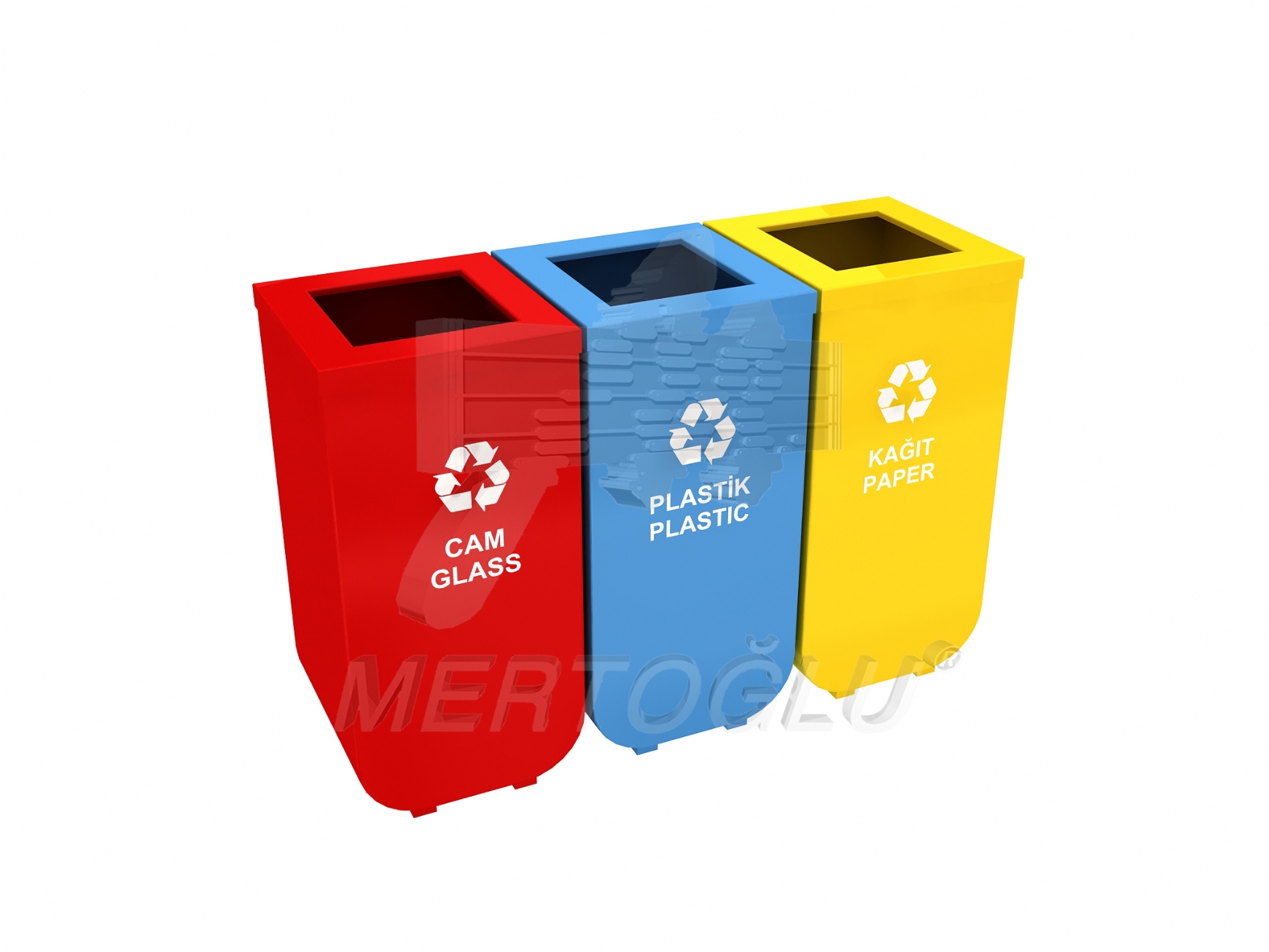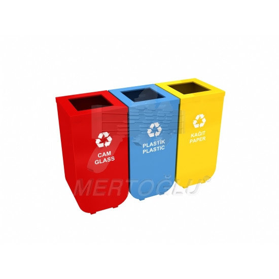 Урна для різного типу сміття, з листового металу, 3 відсіки, обсяг одного відсіку - 50 літрів, встановлюється на підлогу, для застосування всередині та зовні приміщення