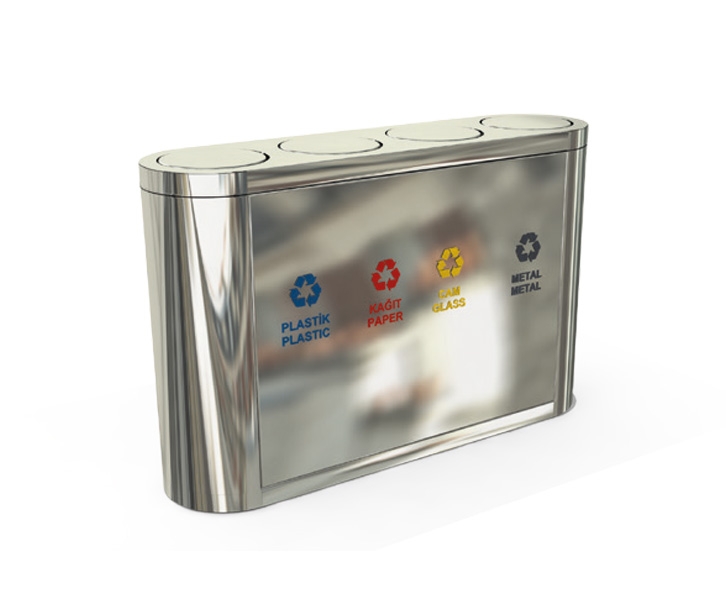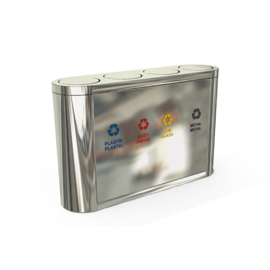 Урна для різного типу сміття, з нержавіючої сталі AISI 304,4 відсіку, обсяг одного відсіку - 39 літрів, встановлюється на підлогу, для застосування всередині та зовні приміщення