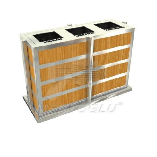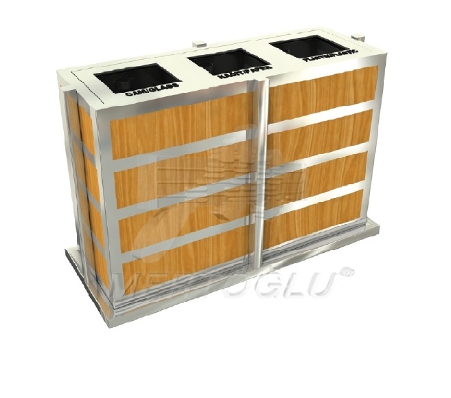 Урна для різного типу сміття, з нержавіючої сталі AISI 304 і покритої меламіном ДСП, 3 відсіки, обсяг одного відсіку - 45 літрів, встановлюється на підлогу, для застосування всередині та зовні приміщення