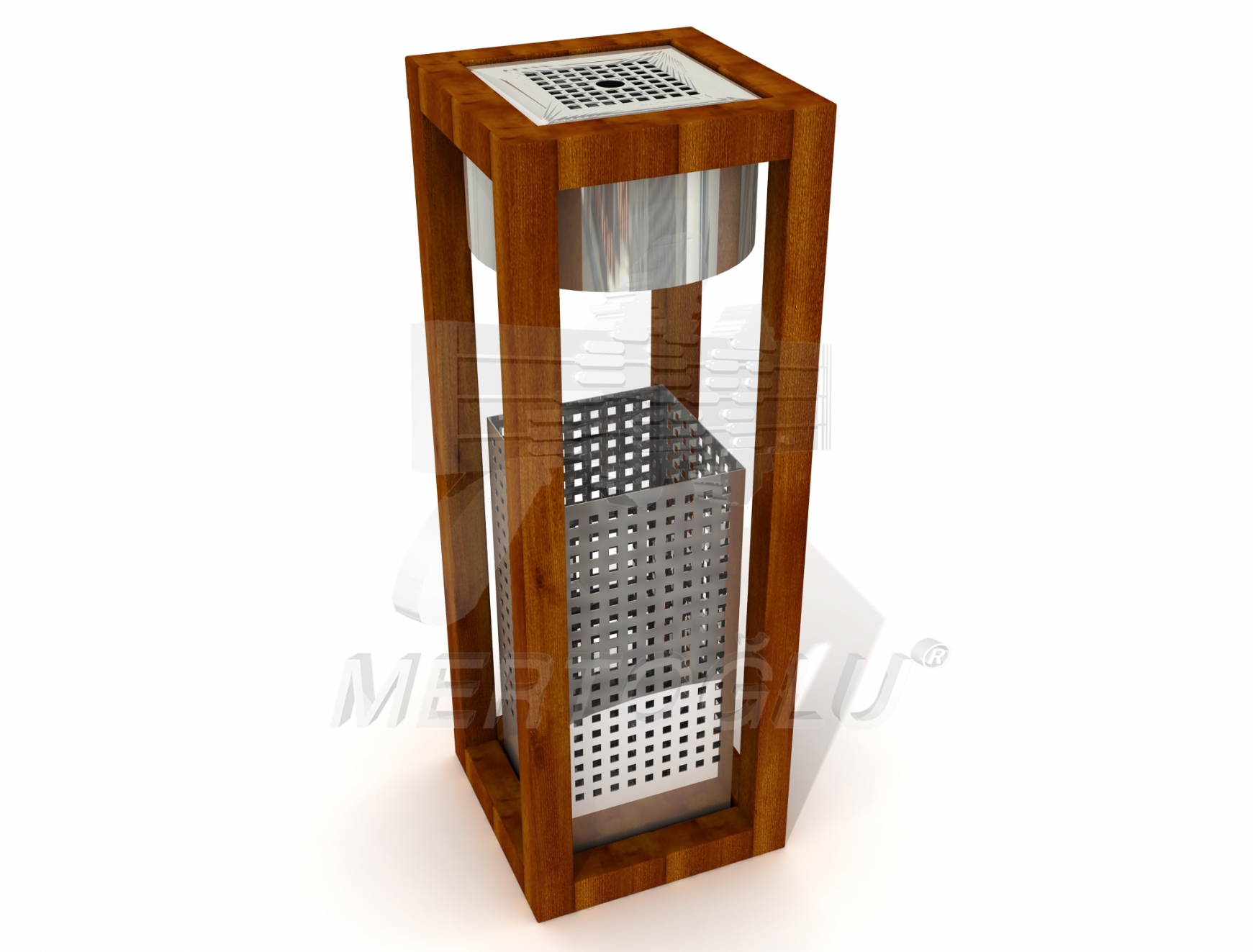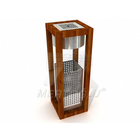 Урна для сміття серії "Ексклюзив" з нержавіючої сталі AISI 304 металу з обробкою під дерево, об'єм урни 13 літрів, об'єм попільнички 1,2 літра, встановлюється на підлогу, для застосування всередині та зовні приміщення