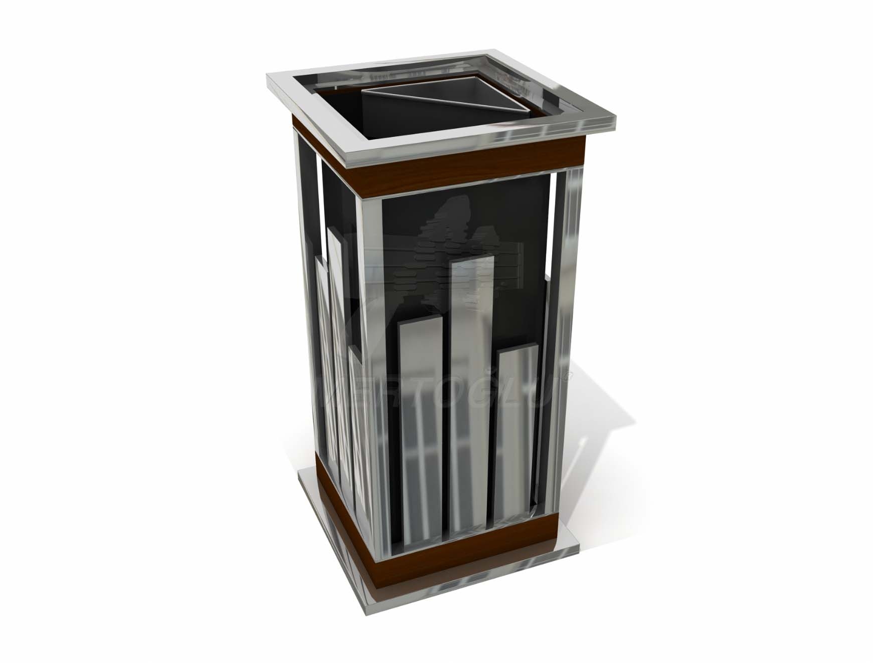 Урна для сміття серії "Ексклюзив" з нержавіючої сталі AISI 304 та металу з обробкою під дерево, загальний об'єм 47 літрів, встановлюється на підлогу, для застосування всередині приміщення