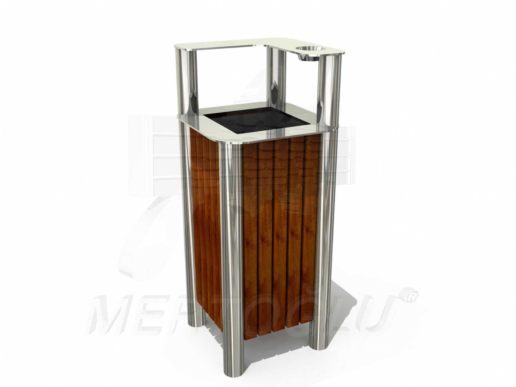 Урна для сміття серії “Ексклюзив” з нержавіючої сталі AISI 304 та дерева-Сосни з просоченням та лаковим покриттям, об'єм урни 33,4 літра, встановлюється на підлогу, для застосування всередині приміщення