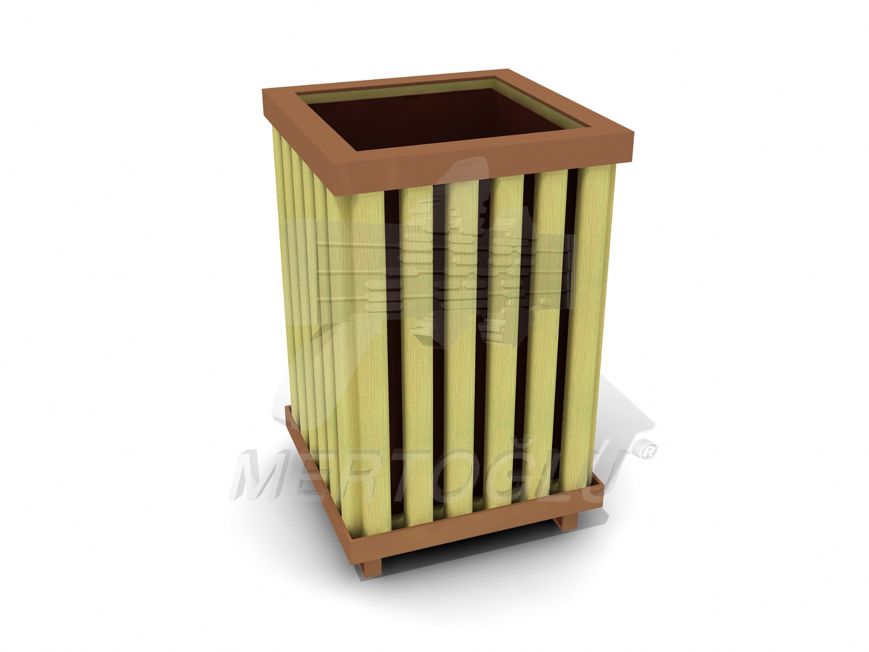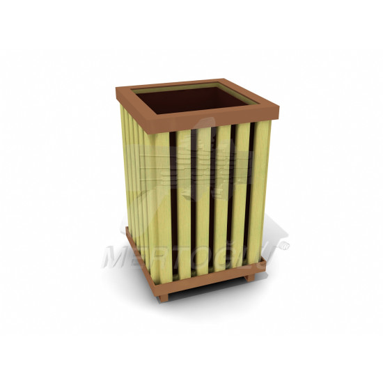 Урна для сміття, каркас -листовий метал, дерево- Сосна з просоченням і лаковим покриттям, загальний об'єм 50 літрів, встановлюється на підлогу, для застосування на вулиці