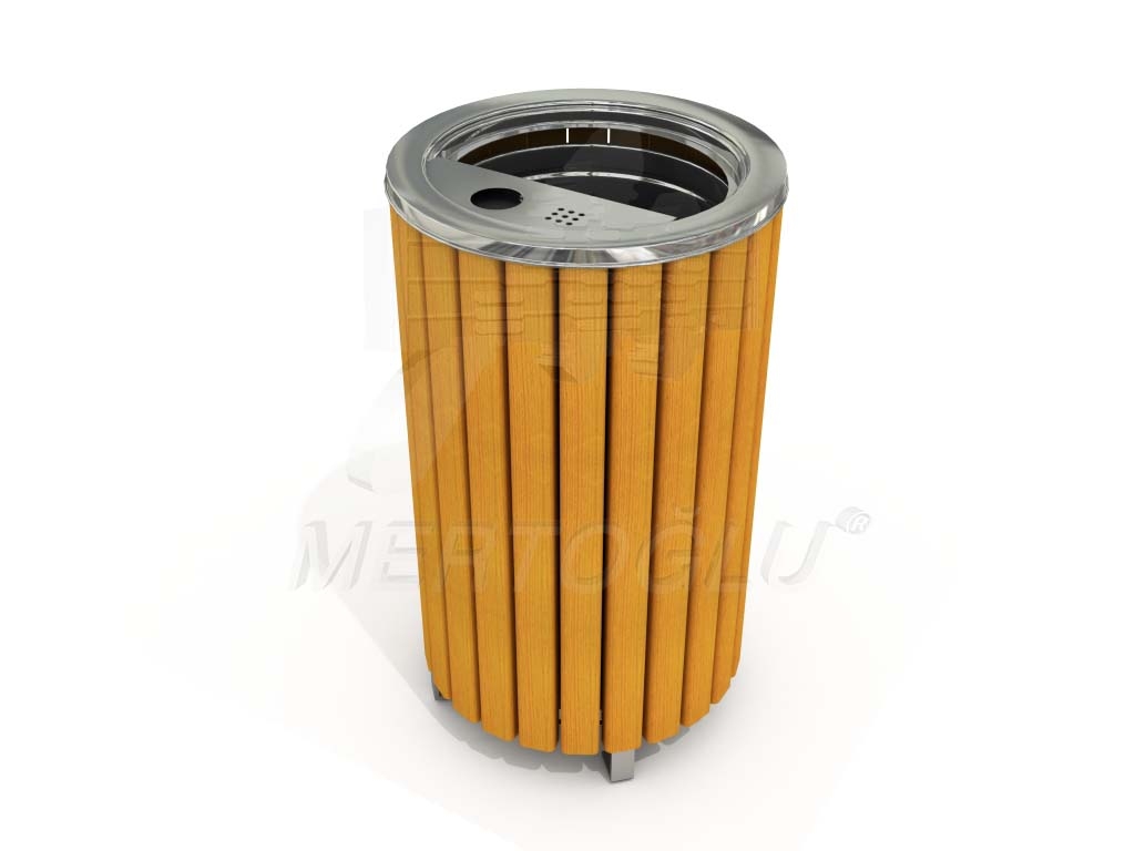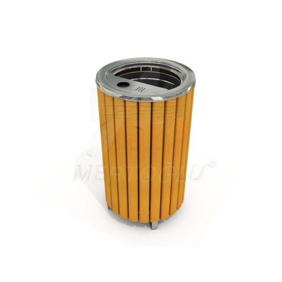 Урна для сміття, каркас - нержавіюча сталь AISI 304, дерево - Сосна з просоченням і лаковим покриттям, загальний об'єм 33 літри, встановлюється на підлогу, для застосування на вулиці