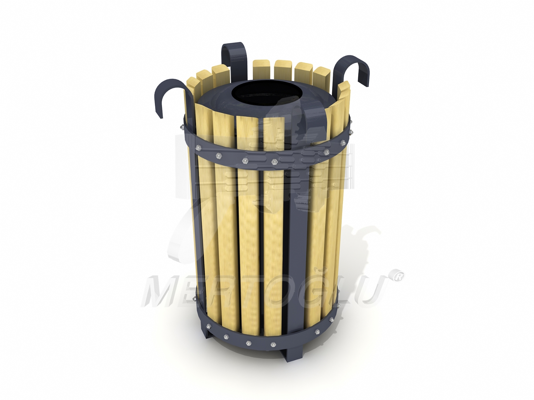 Урна для сміття, каркас-листовий метал, дерево-сосна з просоченням і лаковим покриттям, загальний об'єм 33 літри, встановлюється на підлогу, для застосування на вулиці