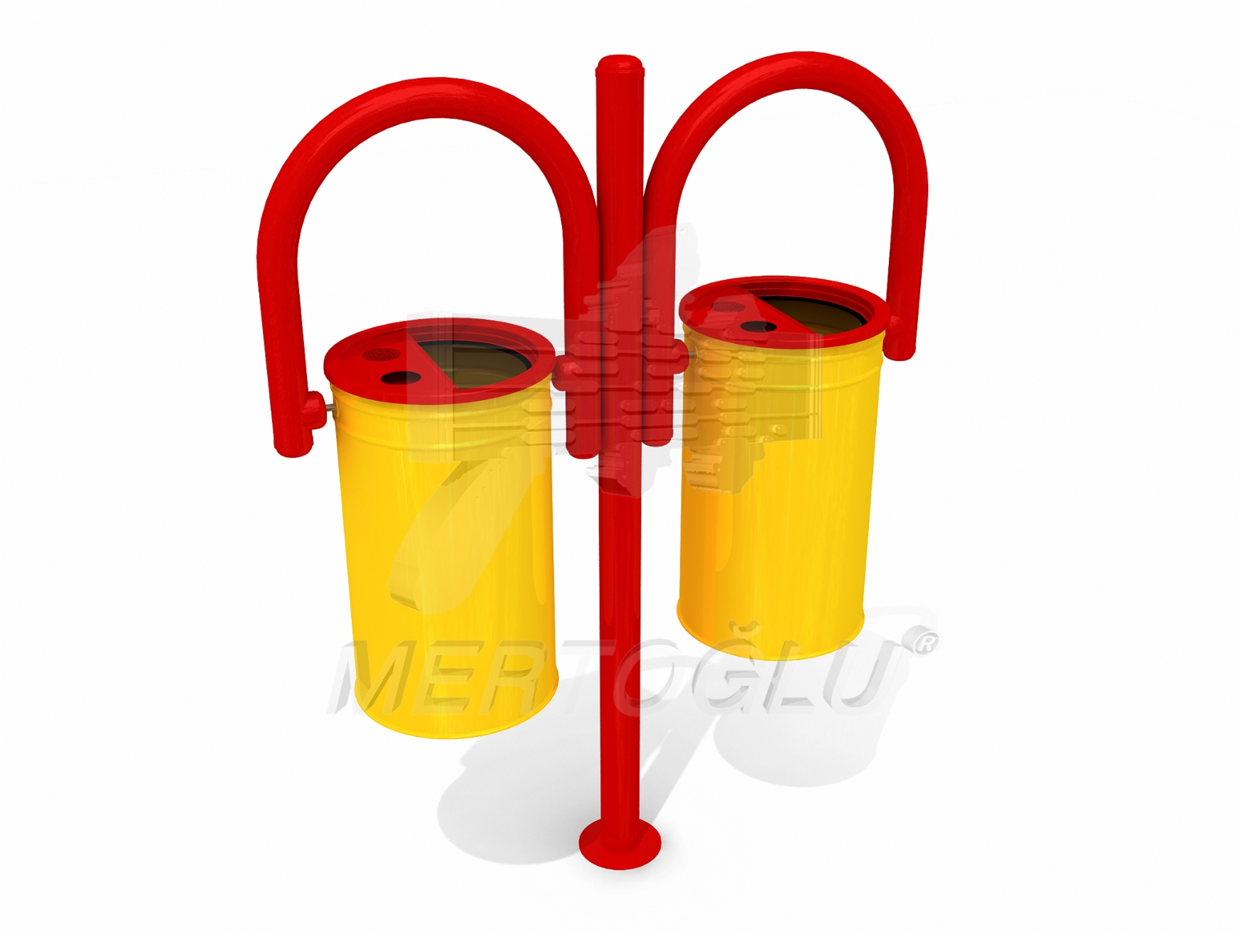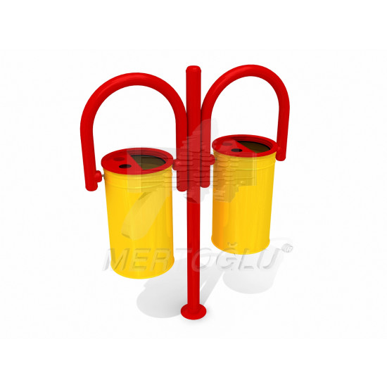 Урна для сміття подвійна, з листового металу та профільної металевої труби, загальний об'єм 30+30 літрів, встановлюється на підлогу, для застосування на вулиці
