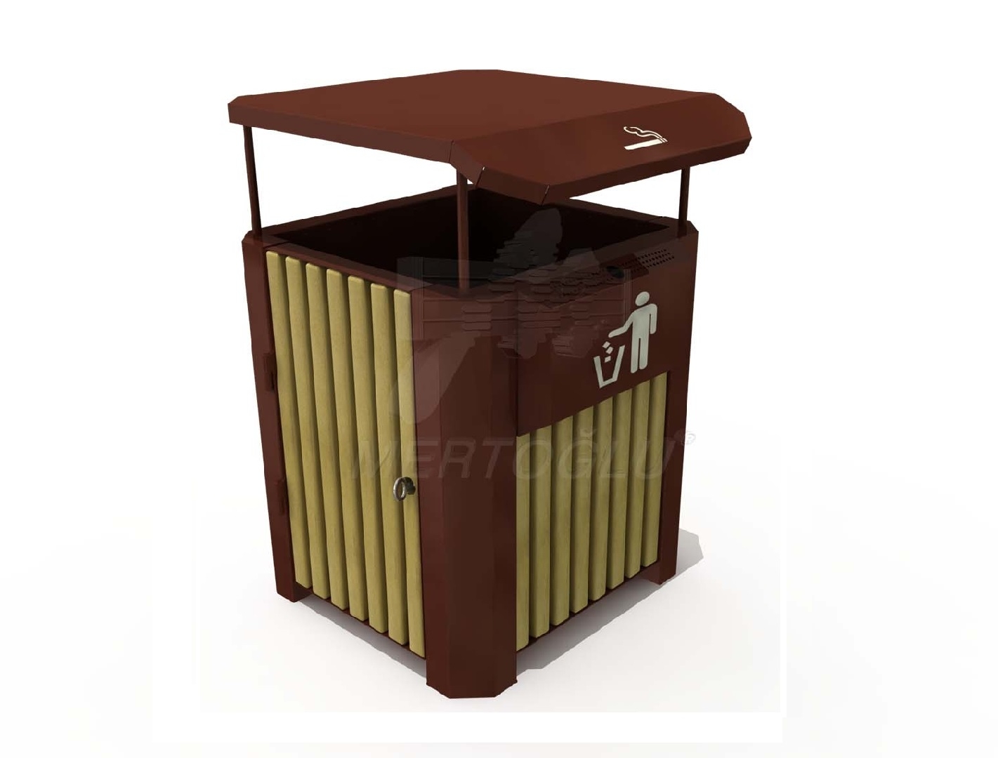 Урна для сміття, каркас-листовий метал, дерево-сосна з просоченням і лаковим покриттям, загальний об'єм 58 літрів, встановлюється на підлогу, для застосування на вулиці