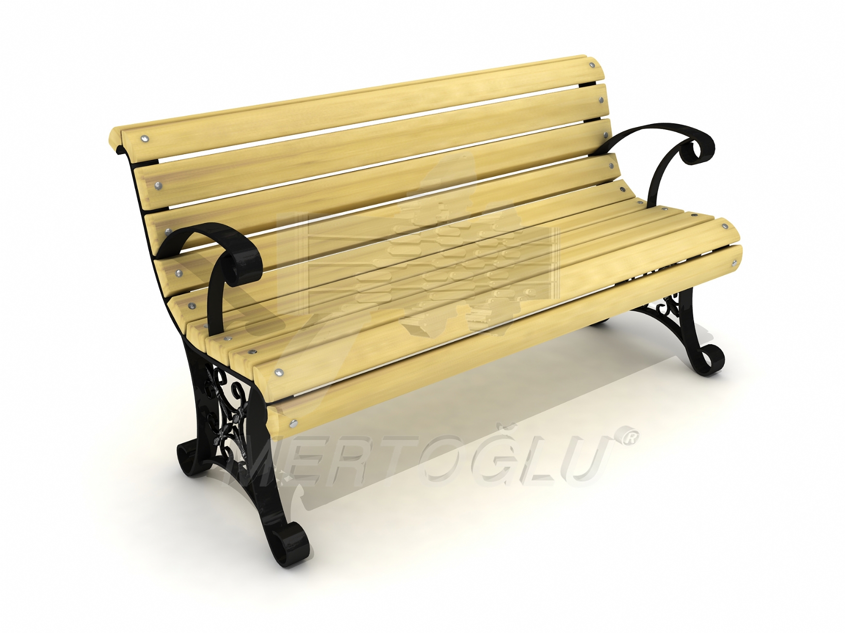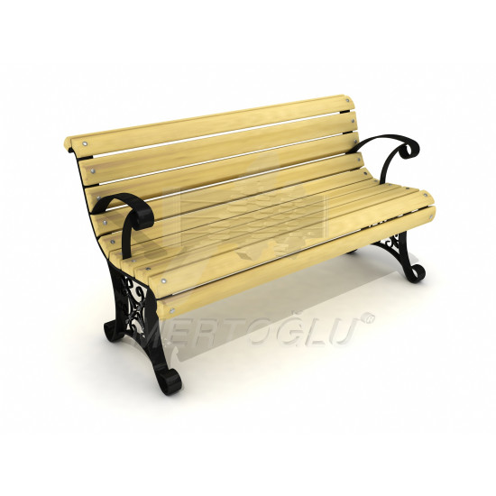 Лавка , каркас-коване залізо, сидіння і спинка-дерево-сосна з просоченням і лаковим покриттям, для застосування всередині та зовні приміщення