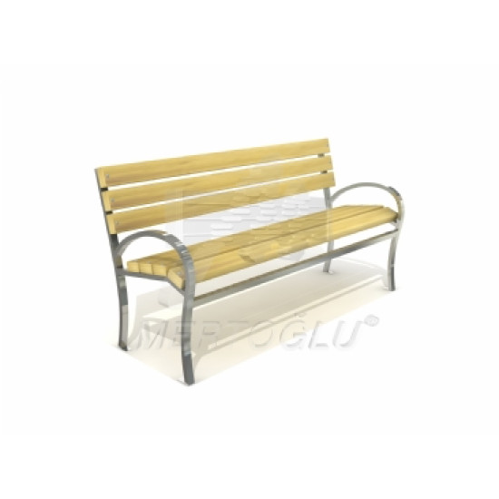 Лавка, каркас - нержавіюча сталь AISI 304, дерево-сосна з просоченням та лаковим покриттям, для застосування всередині та зовні приміщення
