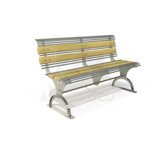 Лавка , каркас - нержавіюча сталь AISI 304, дерево-сосна з просоченням та лаковим покриттям, для застосування всередині та зовні приміщення