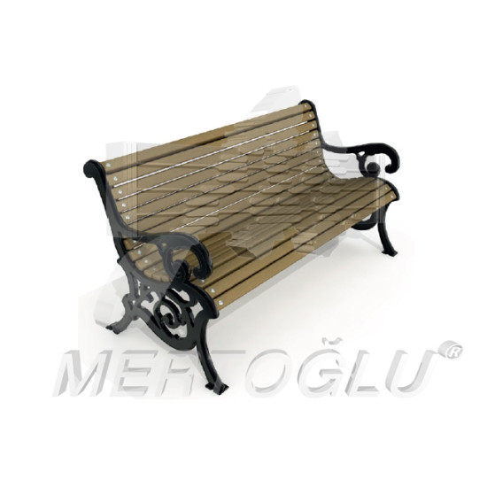 Лавка, каркас та ніжки-алюмінієве лиття, сидіння та спинка-дерево-сосна з просоченням та лаковим покриттям, для застосування всередині та зовні приміщення