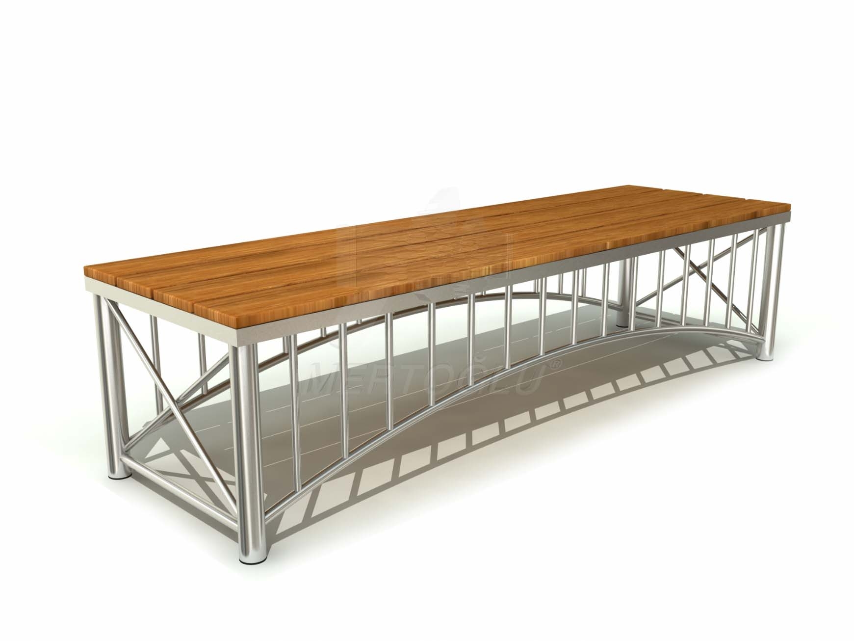 Лавка, нержавіюча сталь AISI 304, дерево-сосна з просоченням та лаковим покриттям, для застосування всередині приміщення