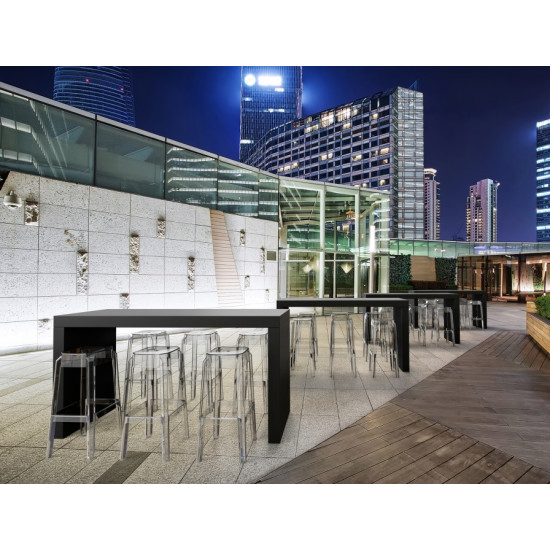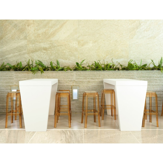 Барний стілець, що штабелюється (висотою 75 см) FOX виконаний з прозорого полікарбонату, відлитого за газовою технологією другого покоління. Стійкий до подряпин та ультрафіолетового випромінювання.