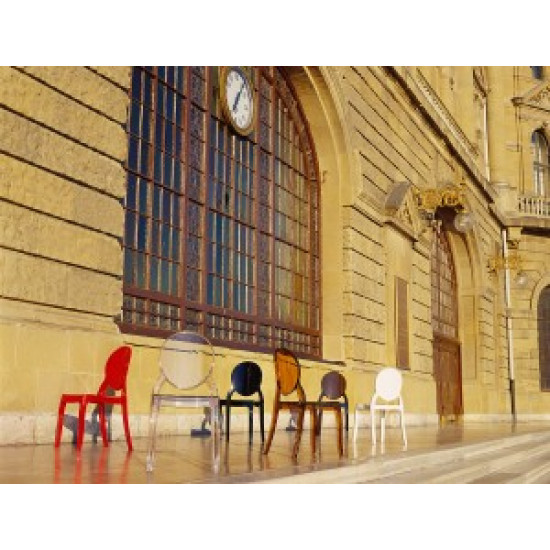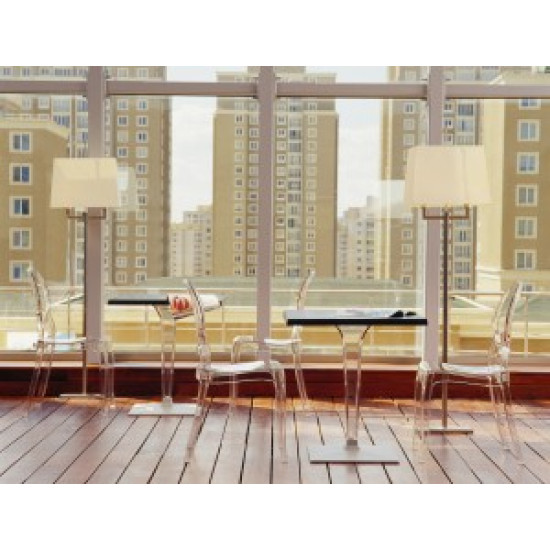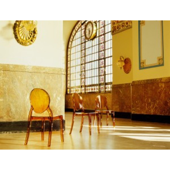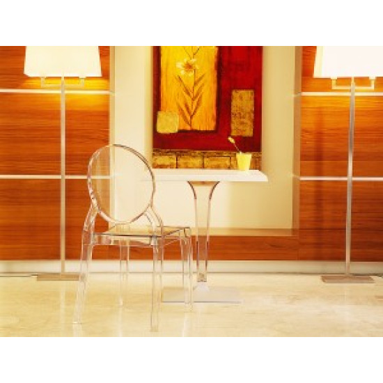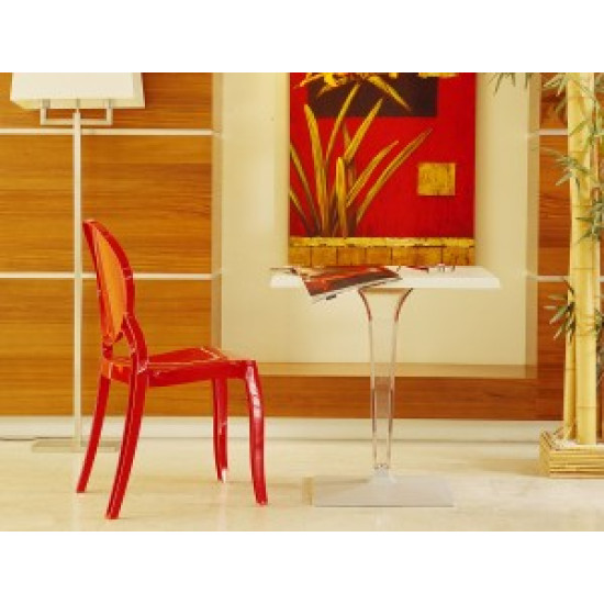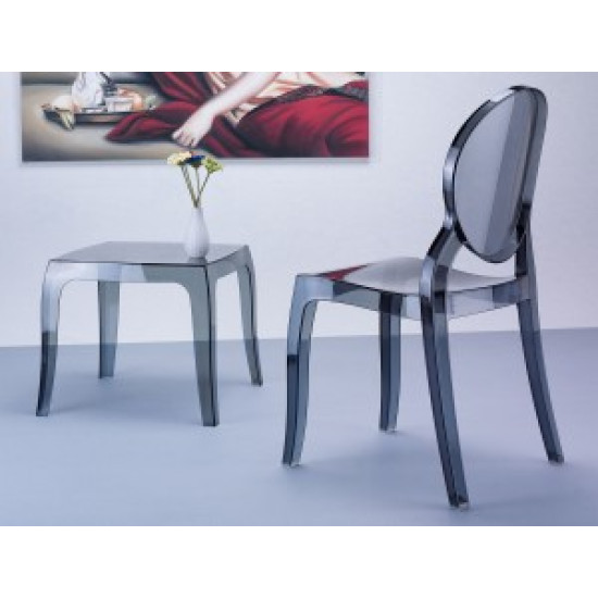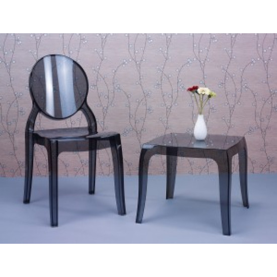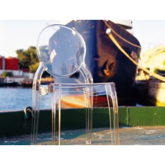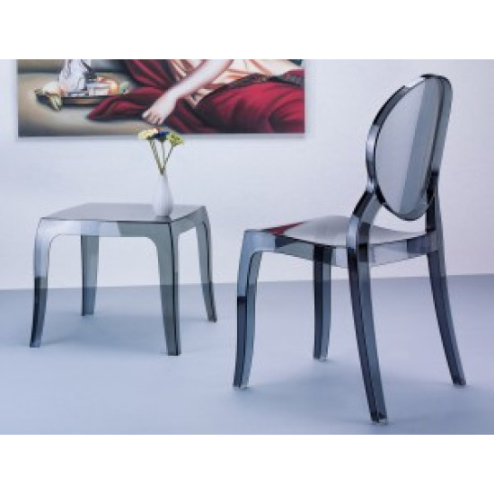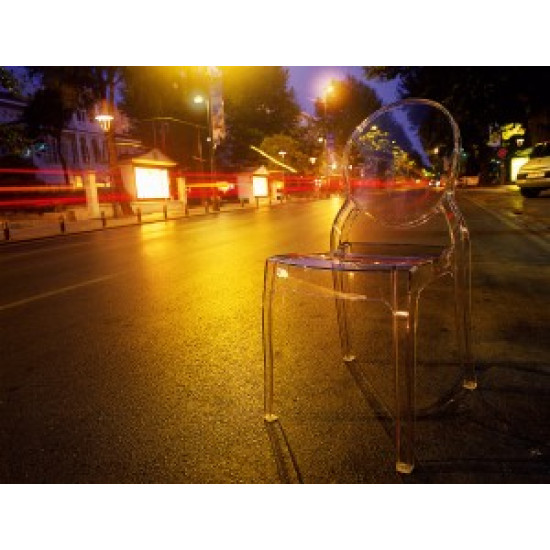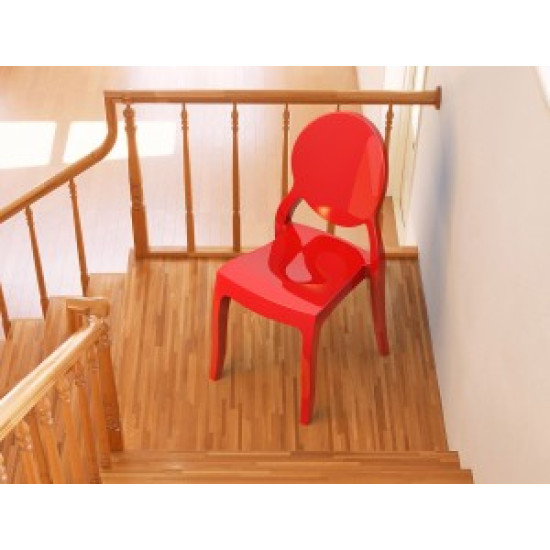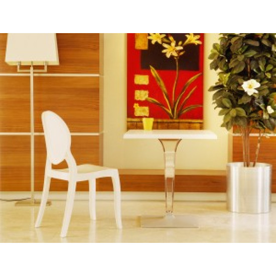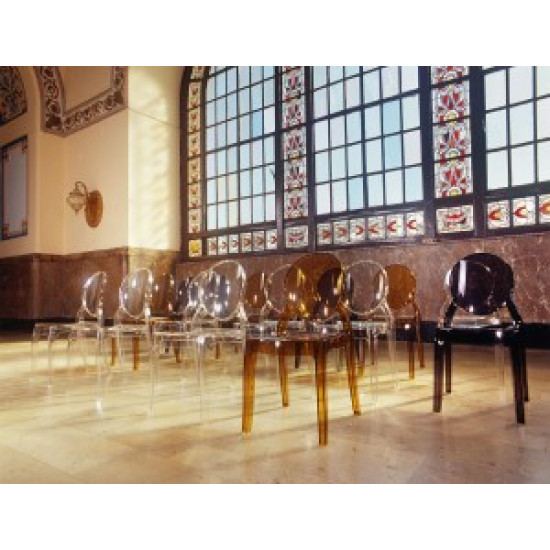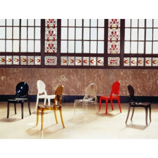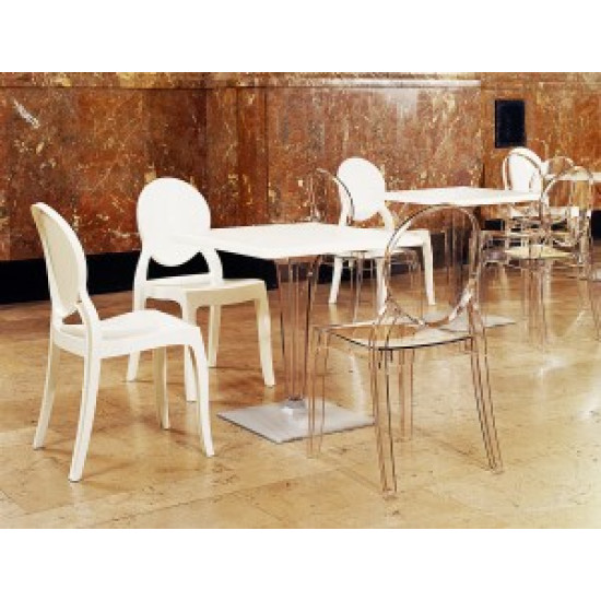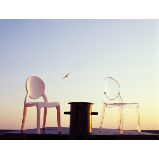 Штабельований стілець ELIZABETH виконаний з прозорого полікарбонату, відлитого з газової технології другого покоління. Стійкий до подряпин та ультрафіолетового випромінювання.