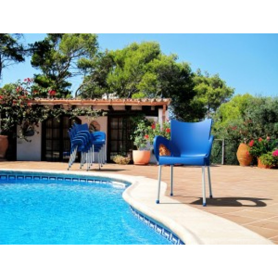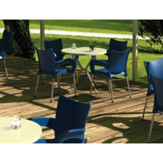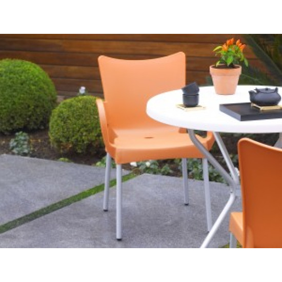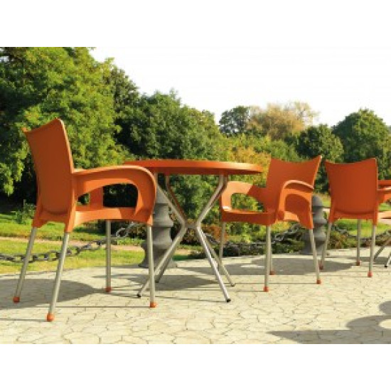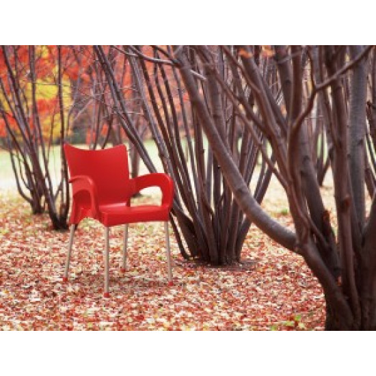 Штабельоване крісло ROMEO. Корпус з полікарбонату, що переробляється, ніжки з анодованого алюмінію, діаметром 25 мм.