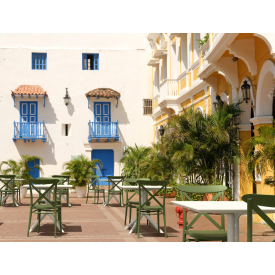 Стілець CROSS, що штабелюється, виконаний з поліпропілену, армованого скловолокном, отриманим з використанням новітнього покоління технологій формування пластмас під тиском. Єдина форма без стиків та з'єднань