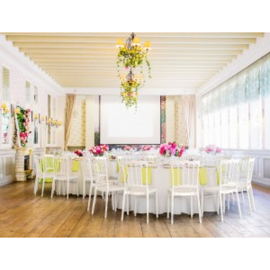 Весільний стілець OPERA для внутрішнього і зовнішнього використання з прозорого або блискучого полікарбонату. Стійкий до подряпин та ультрафіолетового випромінювання.