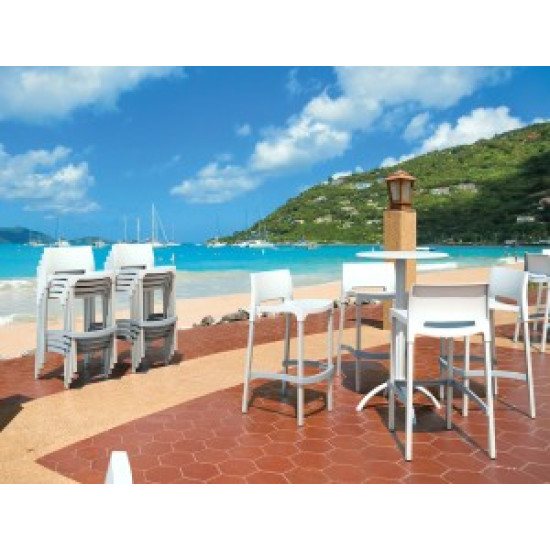 OCTOPUS BAR - барний стіл, виготовлений із міцної атмосферостійкої смоли, армованої скловолокном. Неметалічна рама. Матеріал не піддається впливу іржі, гниття, розпаду волокон, із захистом від впливу ультрафіолету (колір не вигоряє). Розбірний