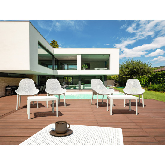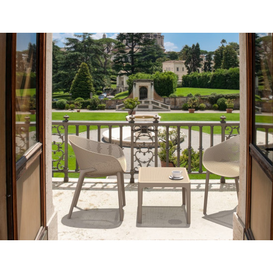 Столик SKY SIDE (заввишки 40 см)   виготовлений із міцної атмосферостійкої смоли, армованої скловолокном. Неметалічна рама. Матеріал не піддається впливу іржі, гниття, розпаду волокон, із захистом від впливу ультрафіолету (колір не вигоряє). Розбірний