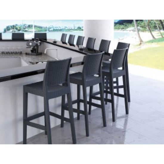 Барний стілець FLORIDA, що штабелюється , виготовлено з міцної атмосферостійкої смоли, армованої скловолокном. Неметалічна рама. Матеріал не піддається дії іржі, гниття, розпаду волокон, із захистом від впливу ультрафіолету (колір не вигоряє).