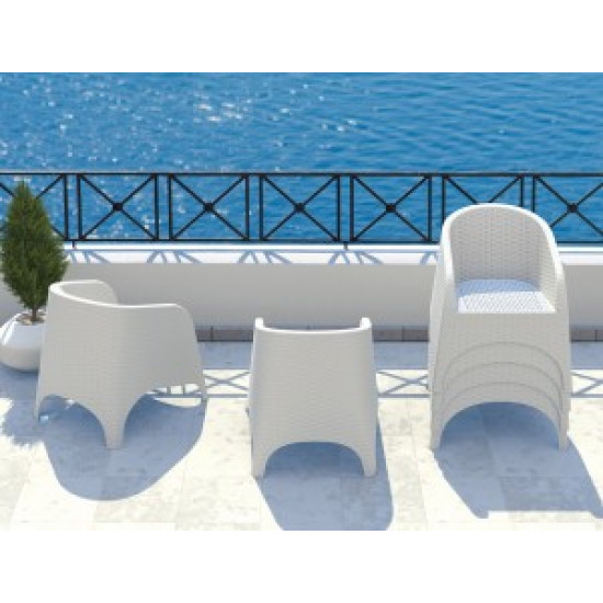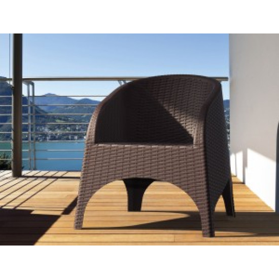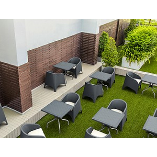 Крісло ARUBA , що штабелюється, виготовлено з міцної атмосферостійкої смоли, армованої скловолокном. Неметалічна рама. Матеріал не піддається впливу іржі, гниття, розпаду волокон, із захистом від впливу ультрафіолету (колір не вигоряє).