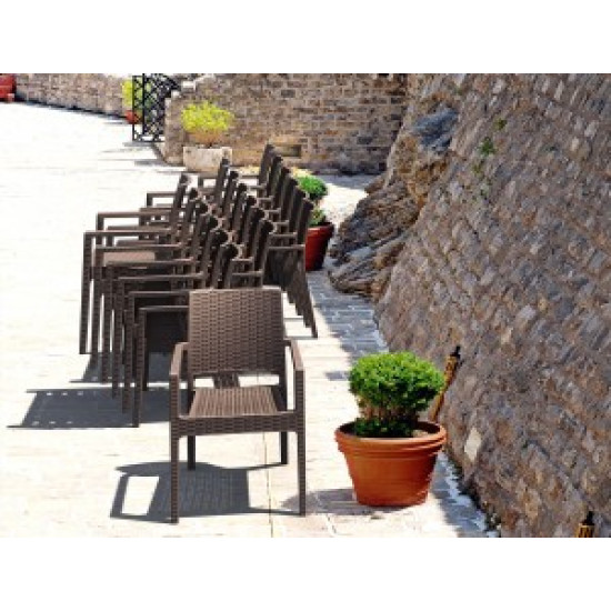 Крісло IBIZA , що штабелюється , виготовлене з міцної атмосферостійкої смоли, армованої скловолокном. Неметалічна рама. Матеріал не піддається впливу іржі, гниття, розпаду волокон, із захистом від впливу ультрафіолету (колір не вигоряє).