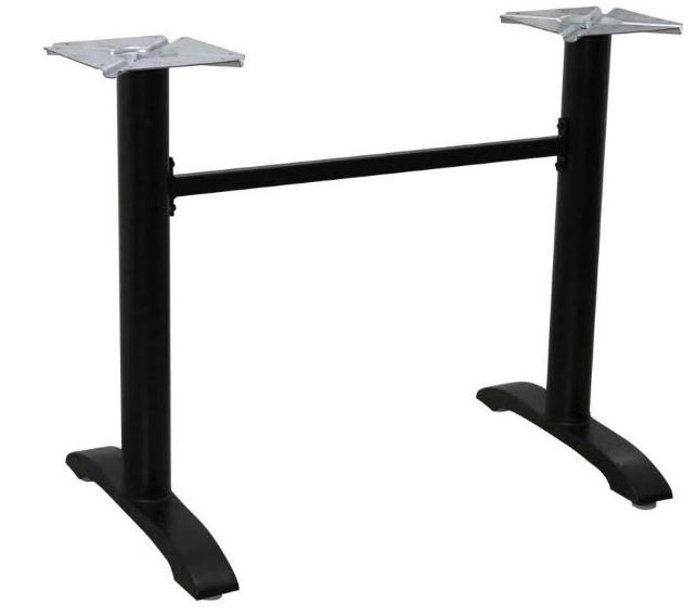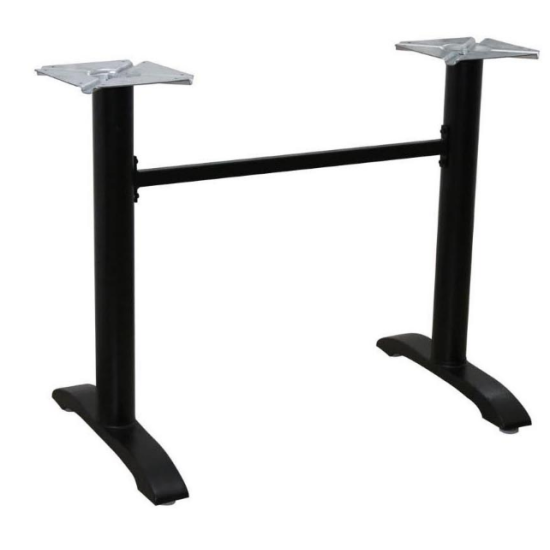 Опора столу подвійна, чавунна, з регульованими підніжками (нівелюють нерівності підлоги) і гумовими демпферами, що знімаються (захищають підлогу від пошкоджень під час прибирання). Для круглих, квадратних, прямокутних стільниць з товщиною 18 мм (максимально). Опора доступна у різних варіантах обробки.