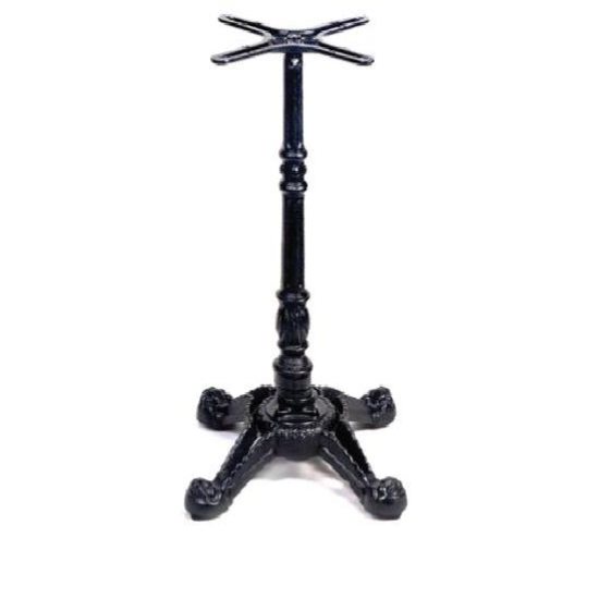 Опора столу чавунна з круглою колоною, з регульованими підніжками (нівелюють нерівності підлоги) і гумовими демпферами, що знімаються (захищають підлогу від пошкоджень під час прибирання). Для круглих, квадратних, прямокутних стільниць з товщиною 18 мм (максимально). Опора доступна у різних варіантах обробки.