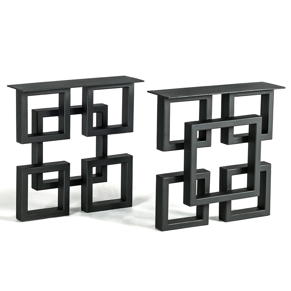 Опора столу подвійна, виготовлена зі сталі з регульованими підніжками (нівелюють нерівності підлоги) і гумовими демпферами, що знімаються (захищають підлогу від пошкоджень під час збирання). Для прямокутних стільниць з товщиною 40 мм (максимально). Опора доступна у різних варіантах обробки.
