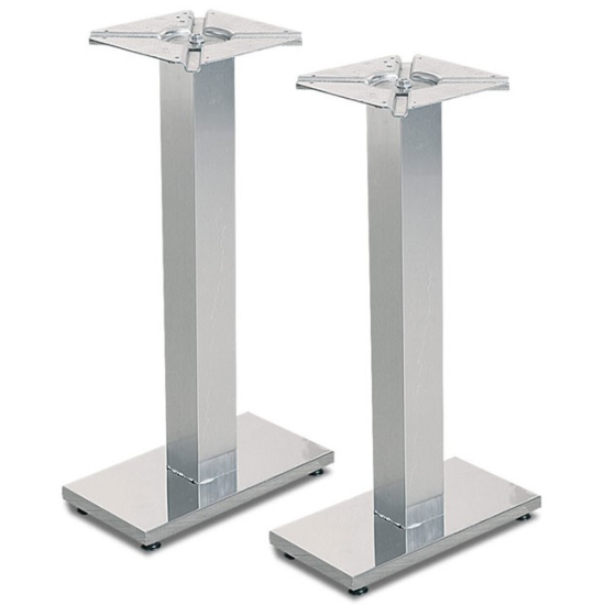 Опора столу подвійна з двома прямими колонами, виготовлена з нержавіючої сталі AISI 430 c регульованими підніжками (нівелюють нерівності підлоги) і знімними гумовими демпферами (захищають підлогу від пошкоджень під час збирання). Для круглих, квадратних, прямокутних стільниць з товщиною . Опора доступна у різних варіантах обробки.