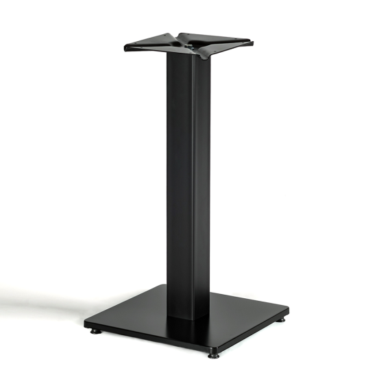 Опора столу з прямою колоною, виготовлена з нержавіючої сталі AISI 430 c регульованими підніжками (нівелюють нерівності підлоги) і гумовими демпферами, що знімаються (захищають підлогу від пошкоджень під час прибирання).Для круглих, квадратних, прямокутних стільниць з товщиною 18 мм. Опора доступна у різних варіантах обробки.