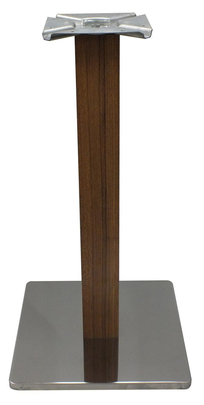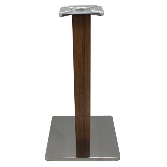 Опора столу з прямою колоною, виготовлена з нержавіючої сталі AISI 430 і МДФ, з регульованими підніжками (нівелюють нерівності підлоги) і знімними гумовими демпферами (захищають підлогу від пошкоджень під час збирання). Для круглих, квадратних, прямокутних стільниць з товщиною ). Опора доступна у різних варіантах обробки.